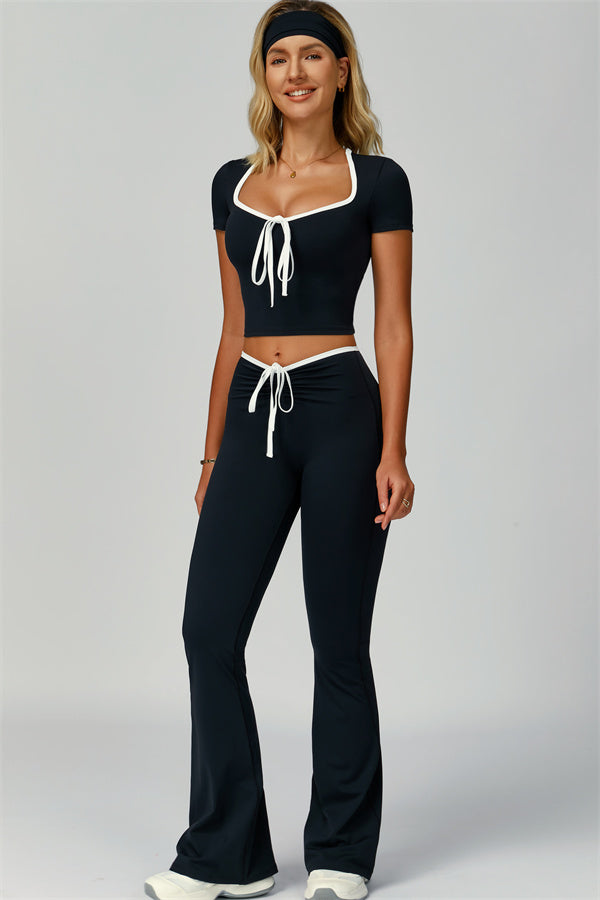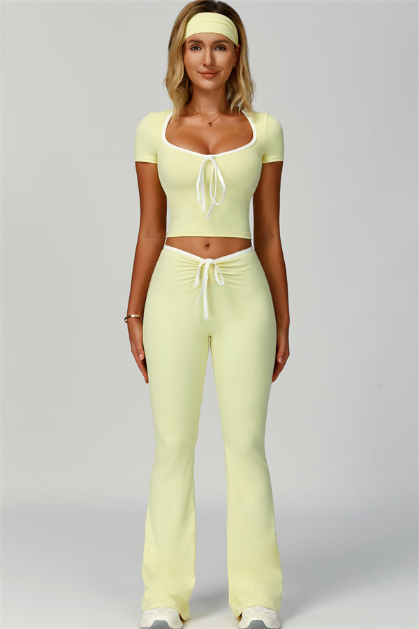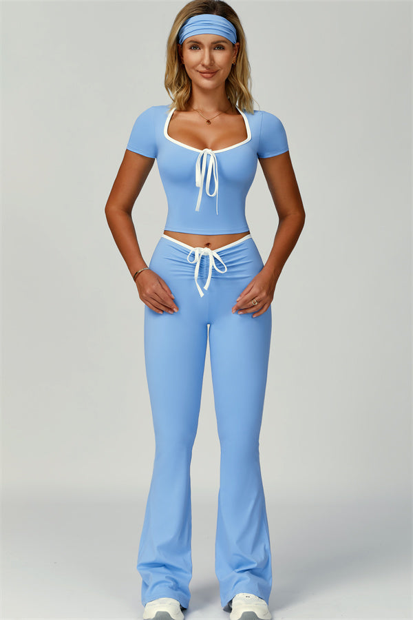 The Skyline Tie Top Flared Leggings Headband 3-Piece Set