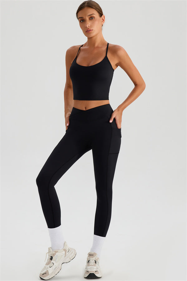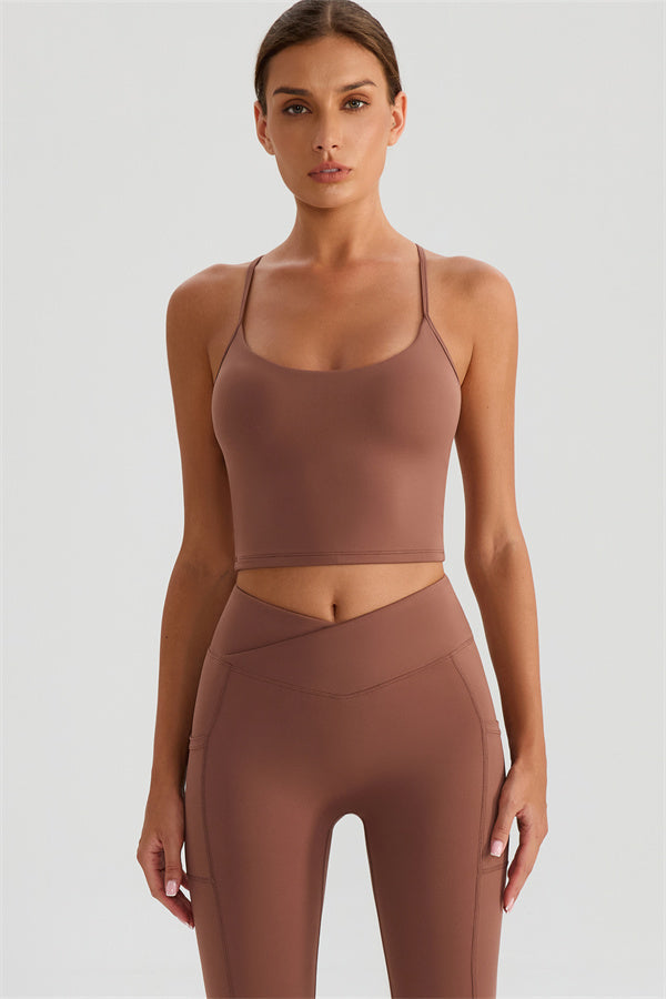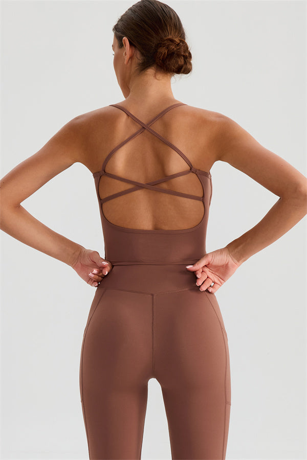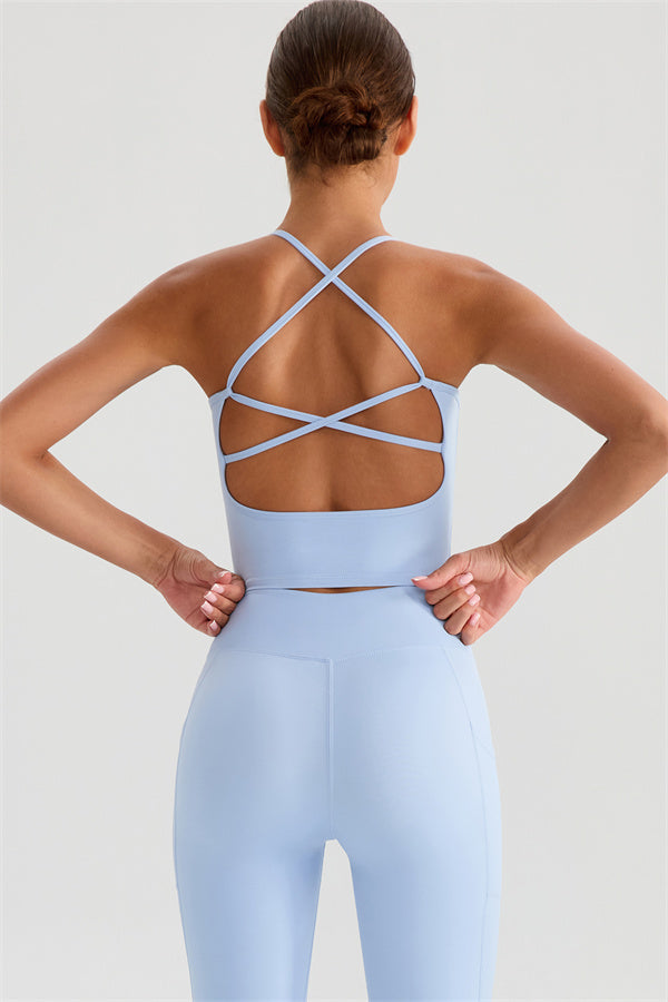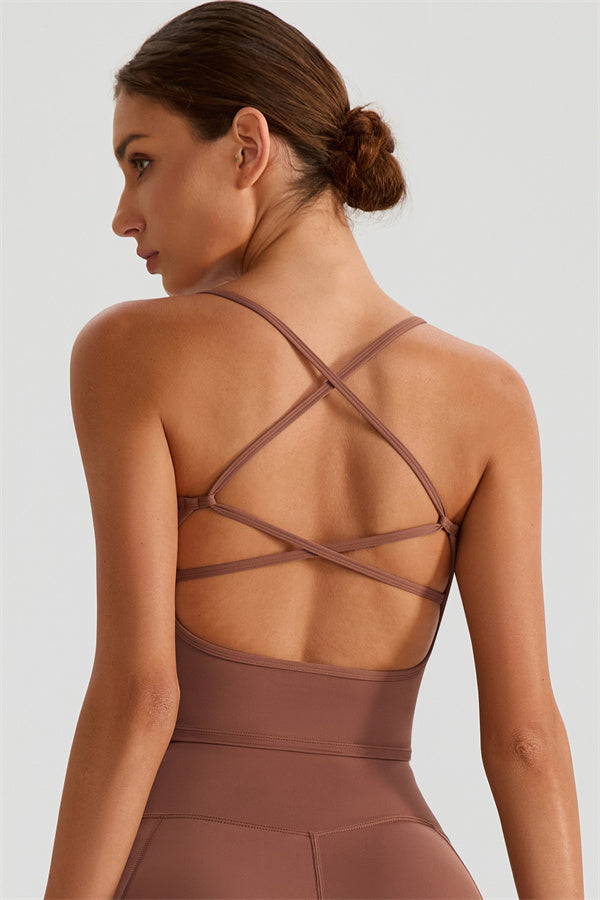 • Double cross-cutout back adds a sleek, modern touch while enhancing your back silhouette