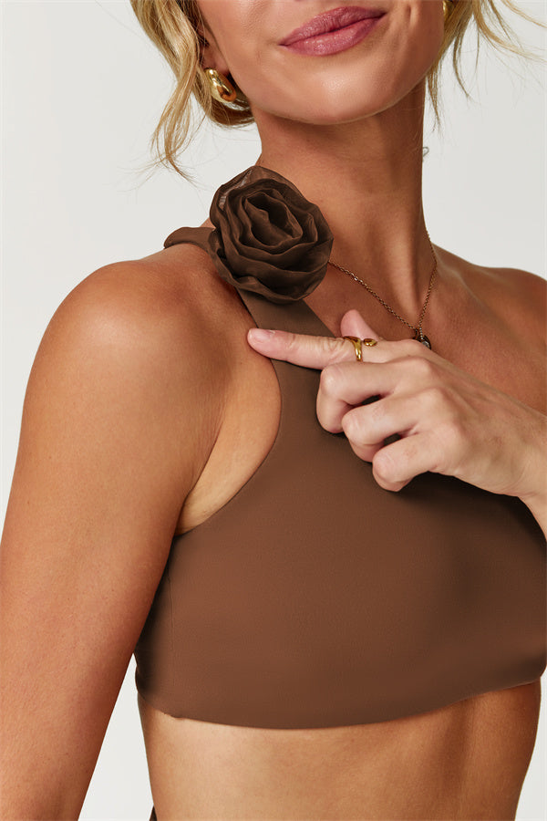 Delicate details meet striking design in The Blooming Sports Bra, a fresh take on activewear with a soft, feminine edge. Lightweight and breathable, it flatters from every angle while offering comfort and support.