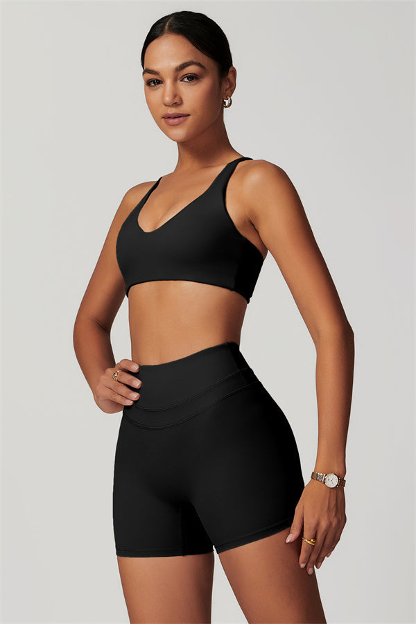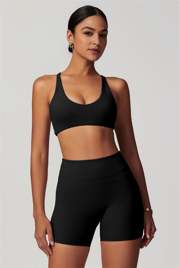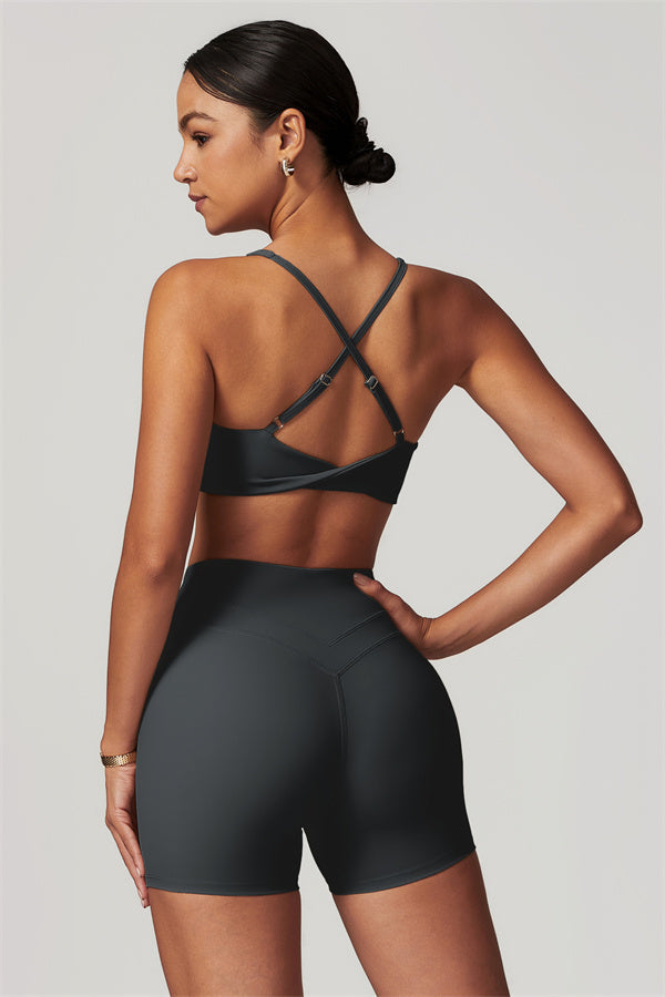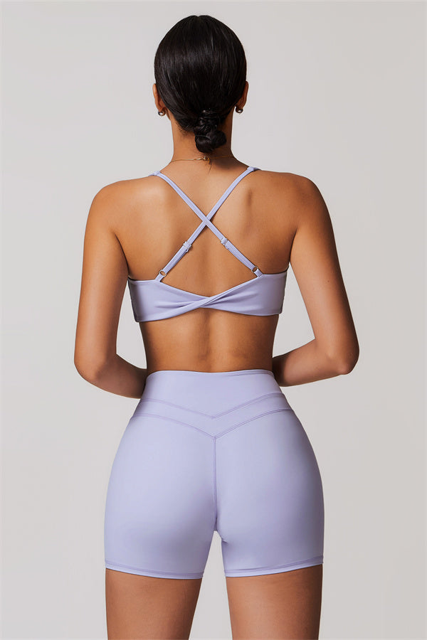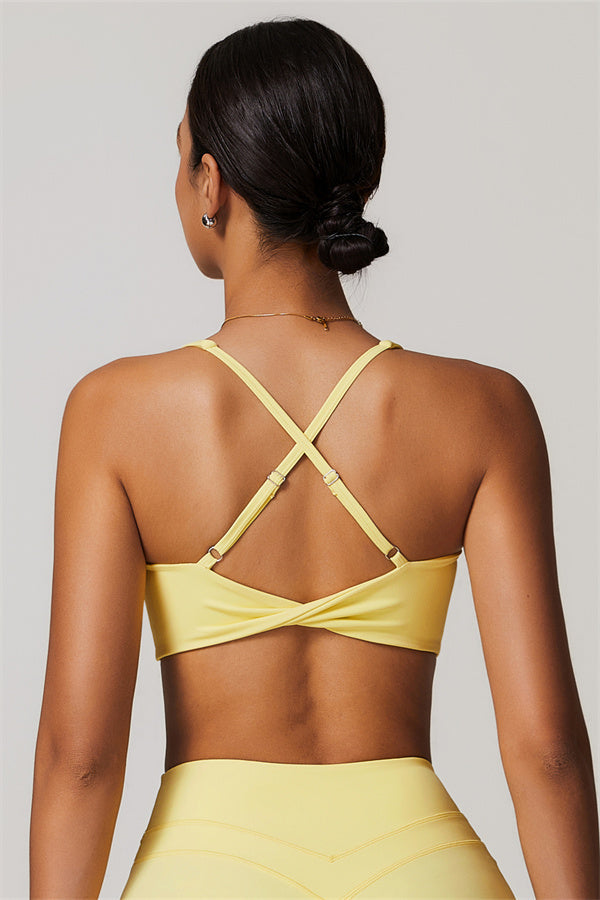 This sports bra combines style and support for a flawless workout-to-street look. Designed with adjustable cross-back straps, it elegantly highlights your shoulders while revealing the beautiful lines of the upper back. The unique twisted back hemline adds depth and a structured look, giving it a dynamic, layered effect. Removable padding provides personalized support, making it easy to transition from workouts to casual wear.