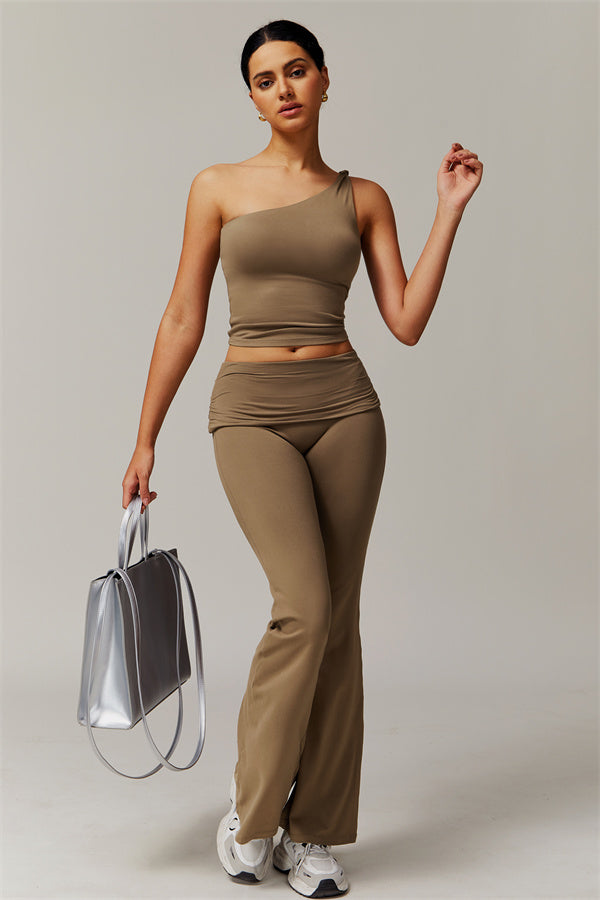 The Luxe Flared Leggings are more than just workout gear – they're a statement piece that combines fashion and function. The ruched waistband not only provides a secure and comfortable fit but also adds a touch of sophistication to your look. The flared leg design is both trendy and practical, offering a unique silhouette that sets these leggings apart from the rest.