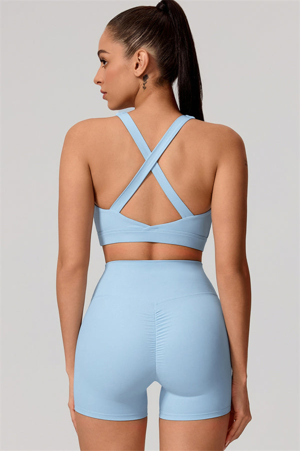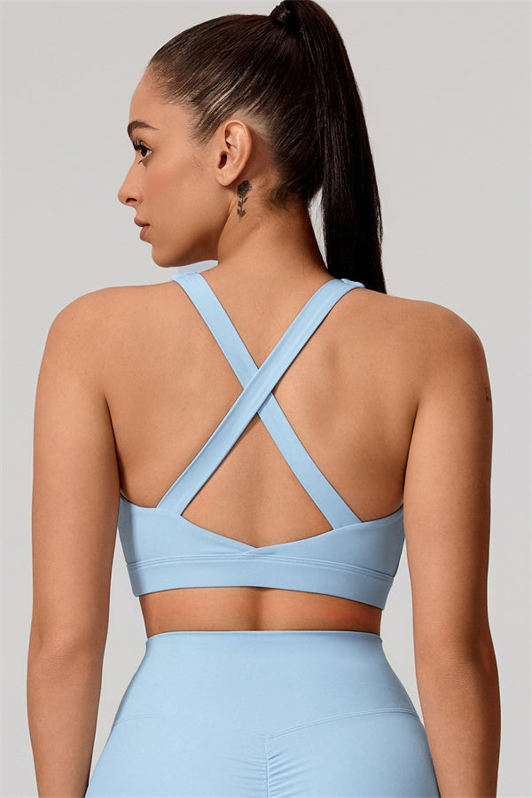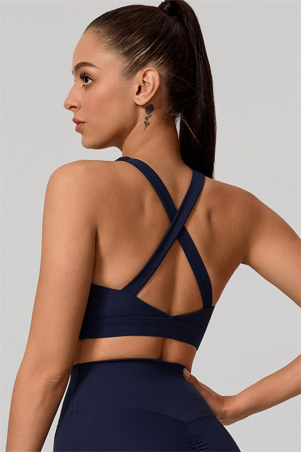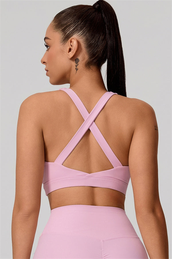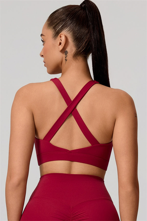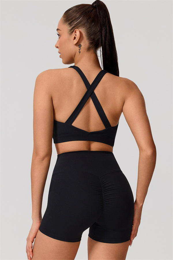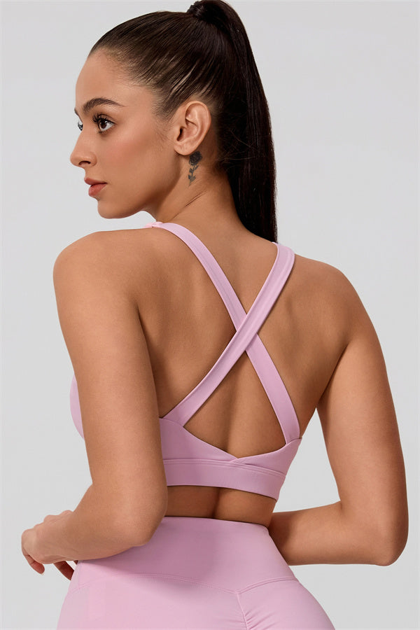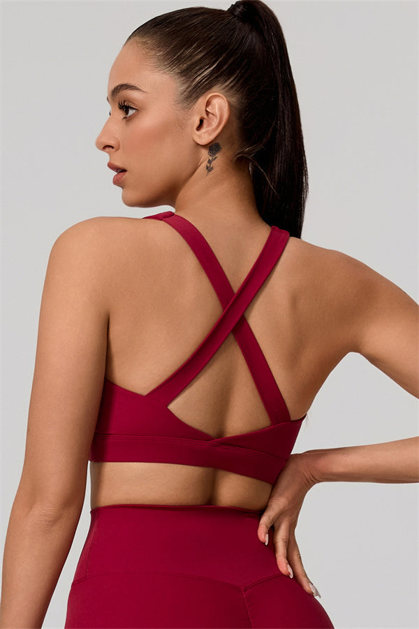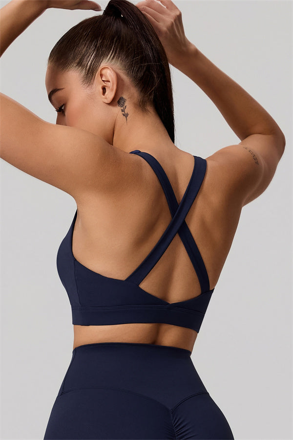 Dual shoulder straps with cross-back design reveal a beautiful butterfly bone