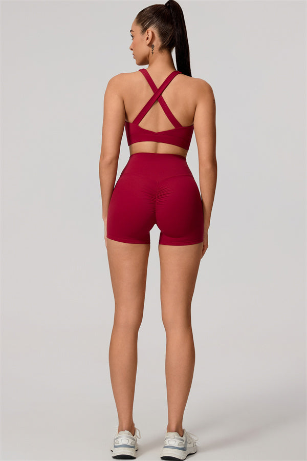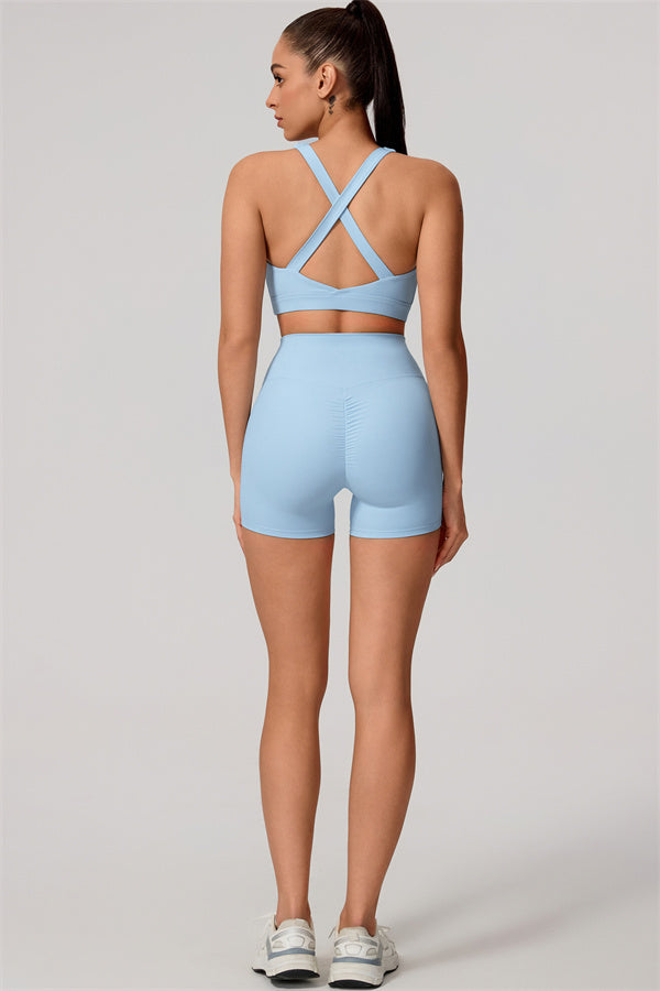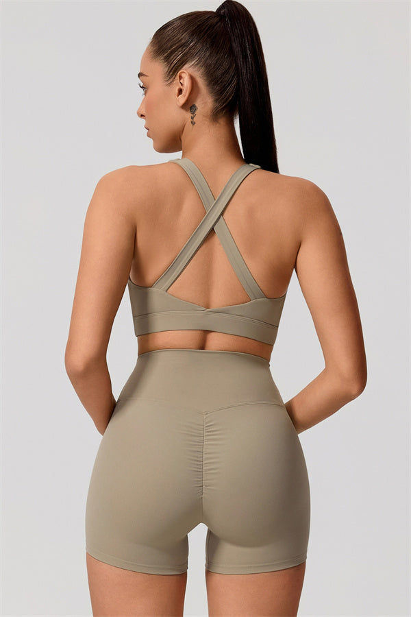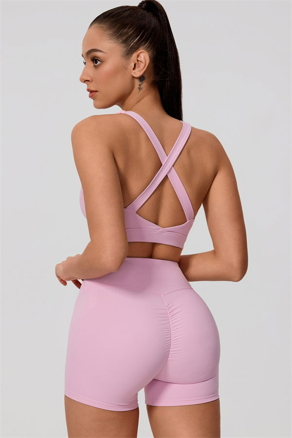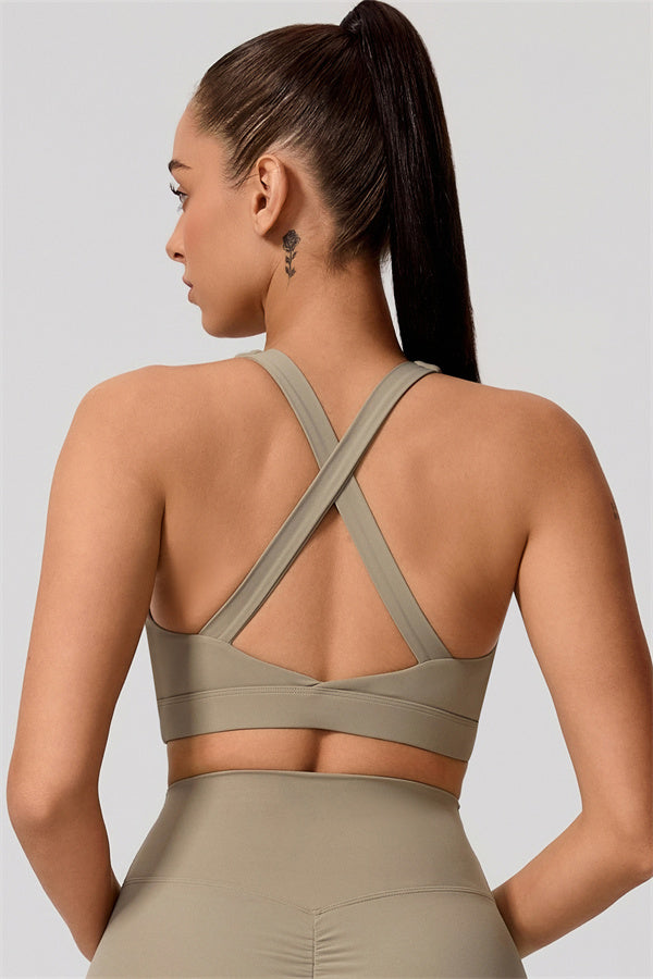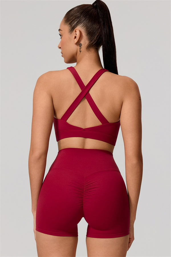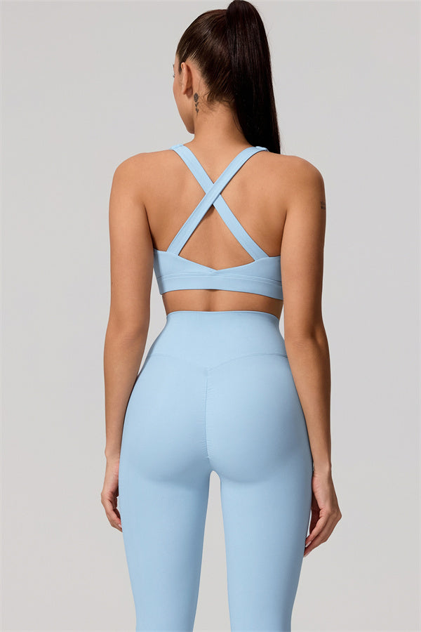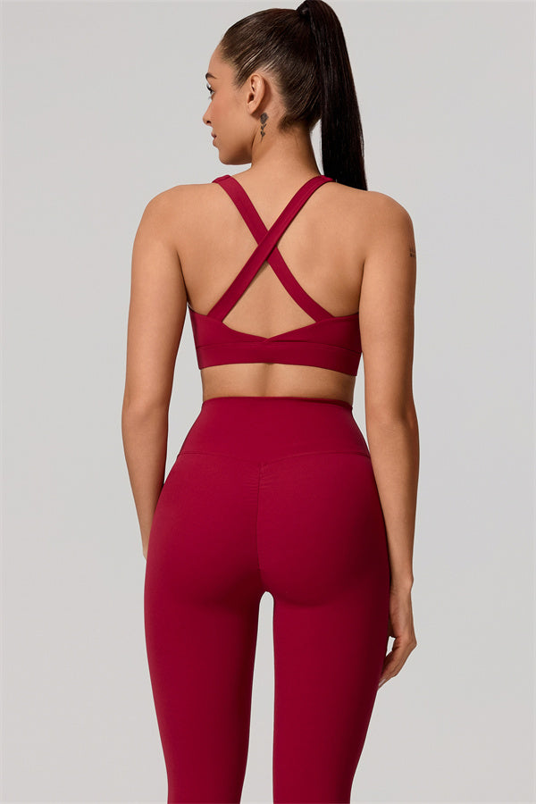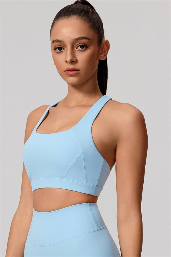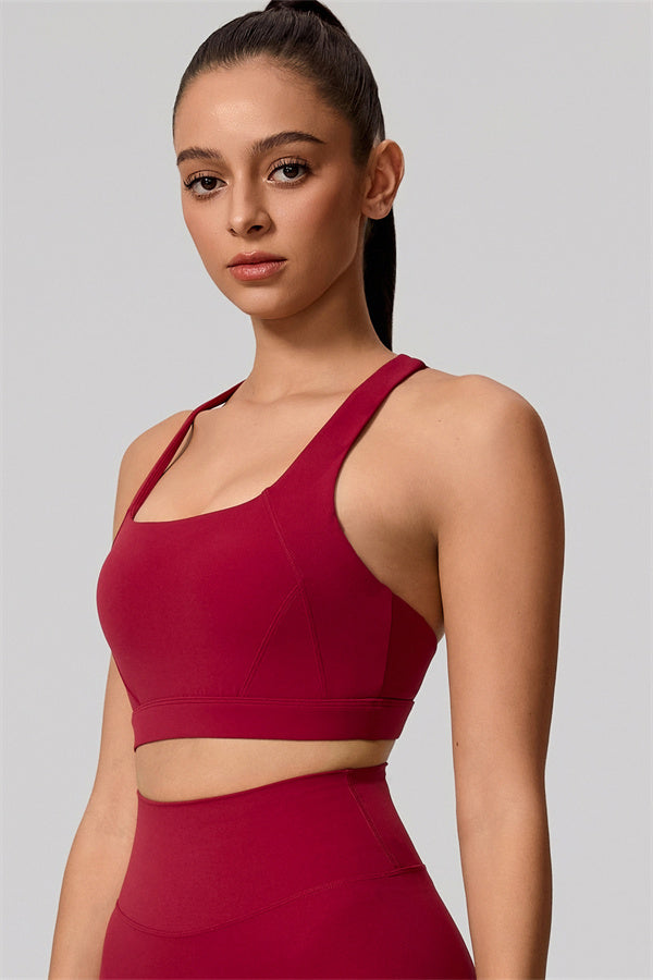 Dual shoulder straps with cross-back design reveal a beautiful butterfly bone