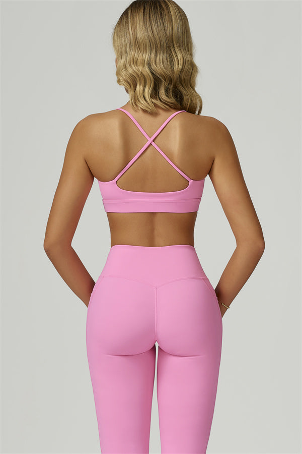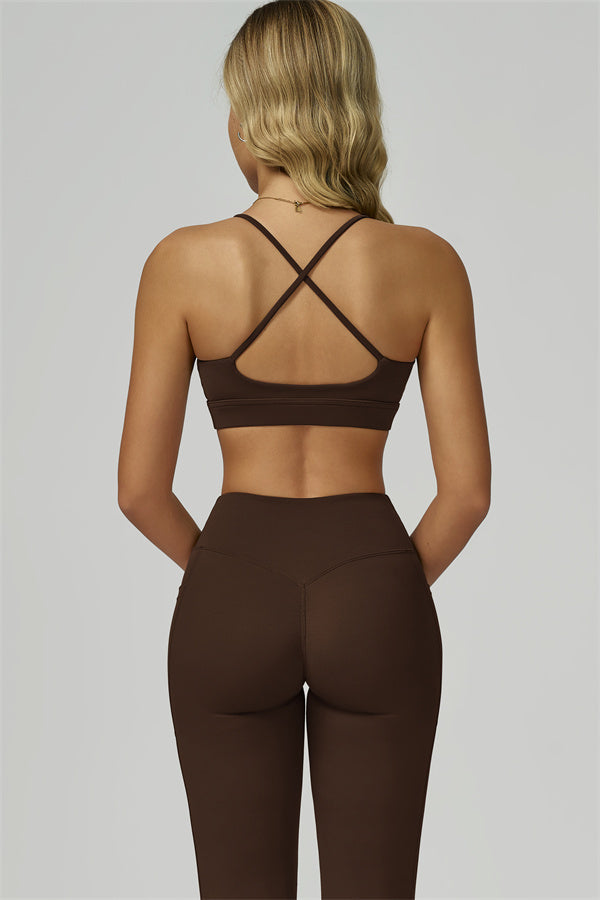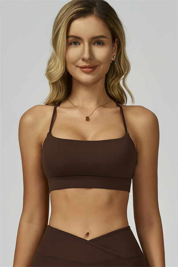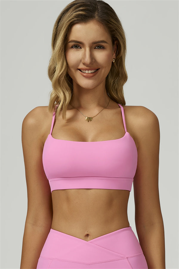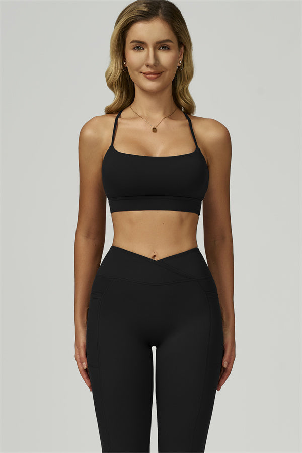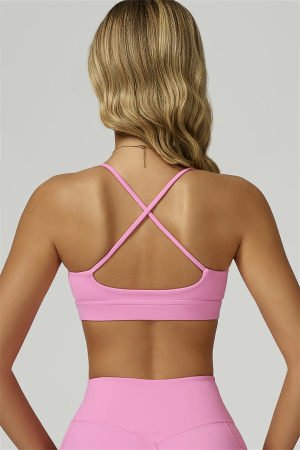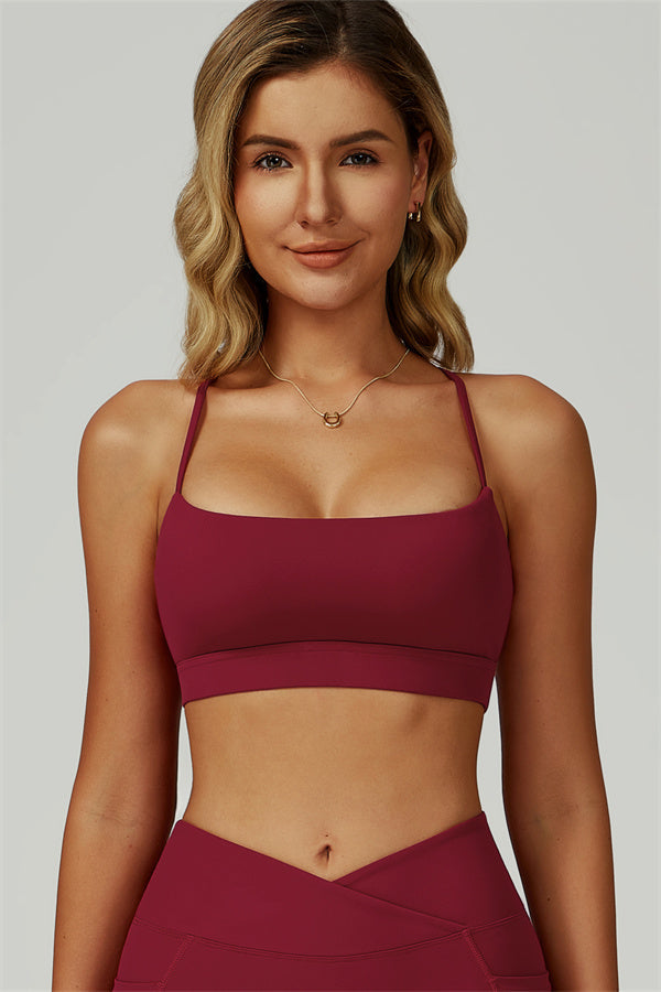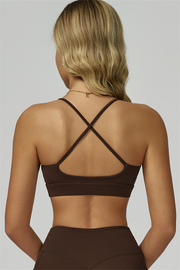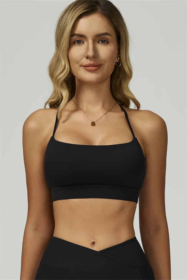 Slim, crisscross back straps with cutout detail to reveal and flatter the upper back
