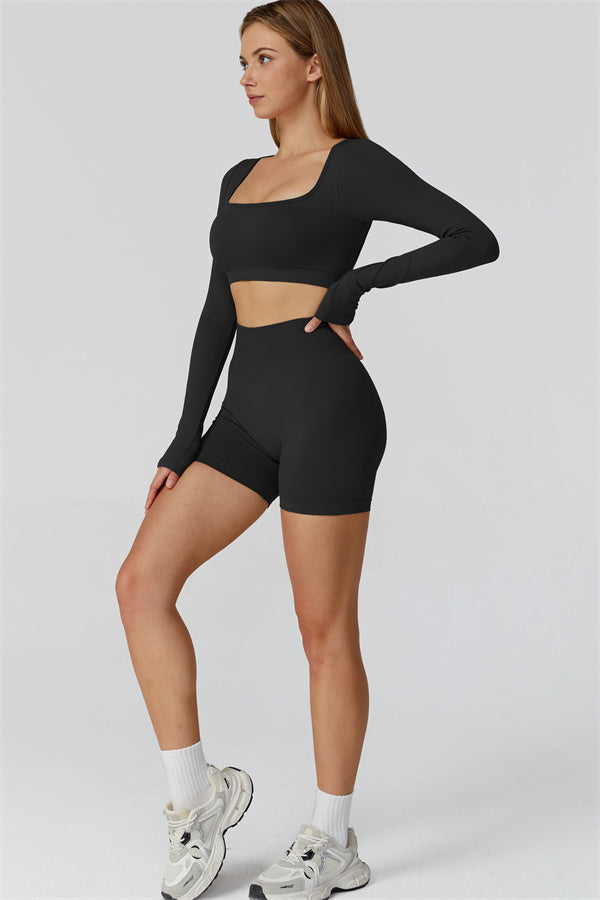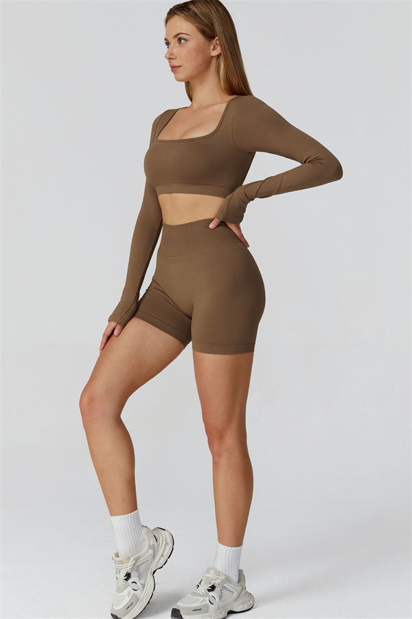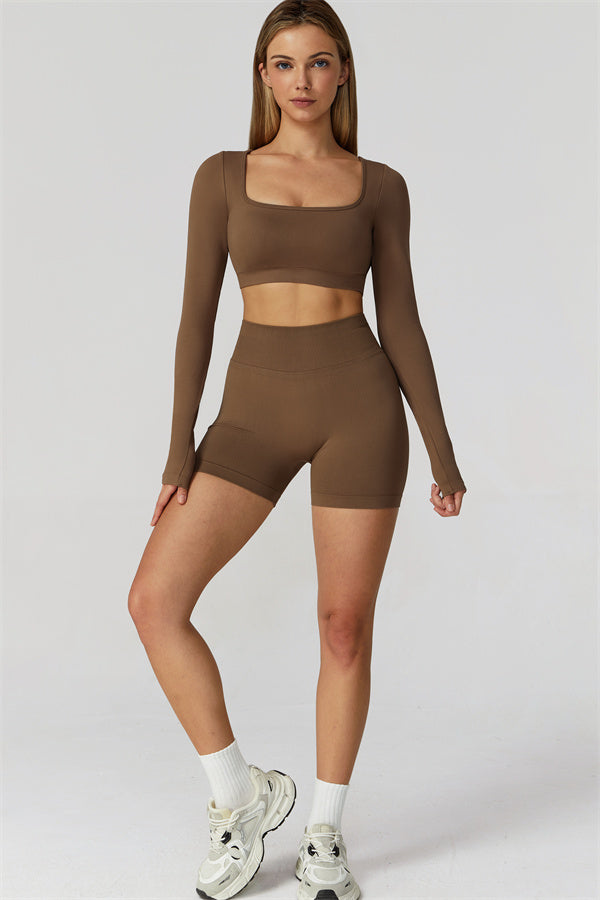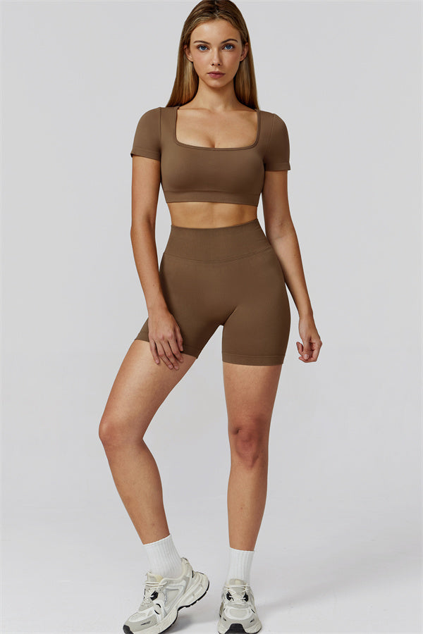 Designed to sculpt and flatter, The Reign Shorts feature a fully ribbed high waistband that shapes and hugs your waist for a secure fit. Ruched detailing at the back lifts and defines the glutes, while curved contour seams create a fuller, rounded silhouette. Made from seamless knit recycled fabric for comfortable, flexible wear.