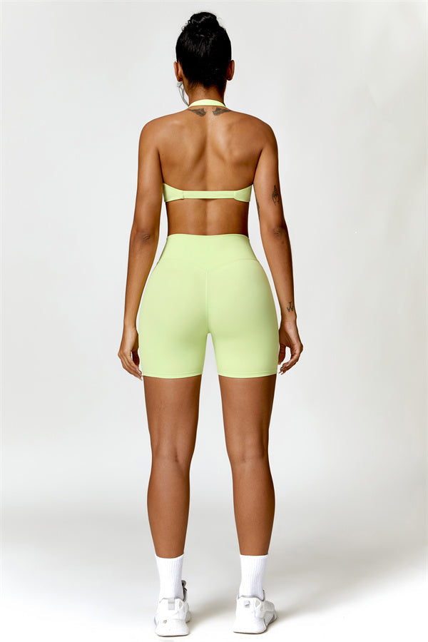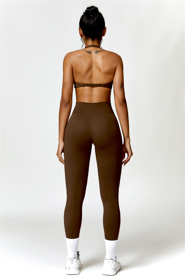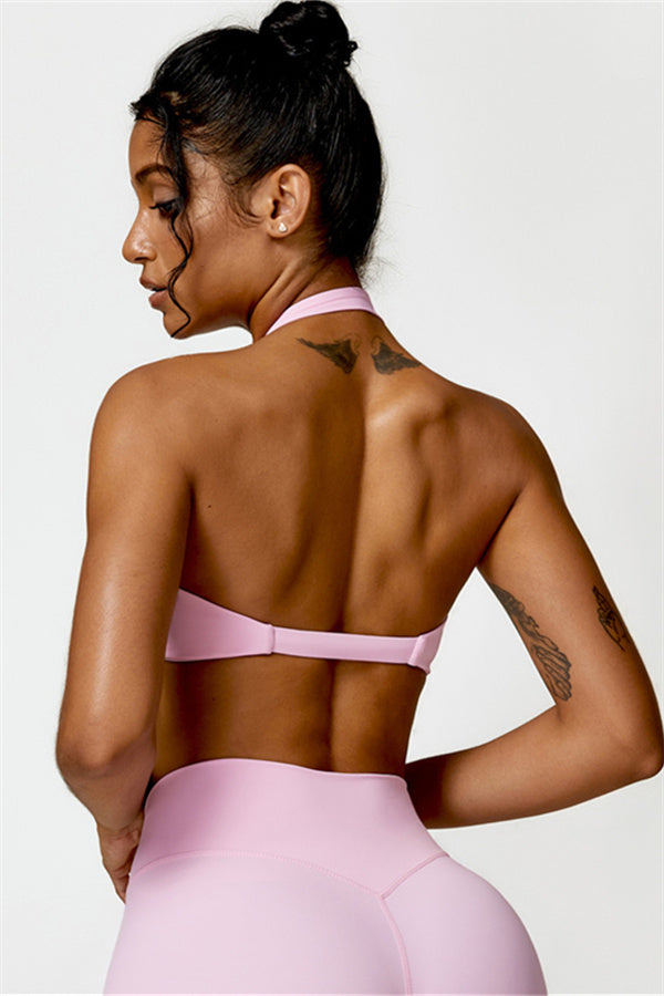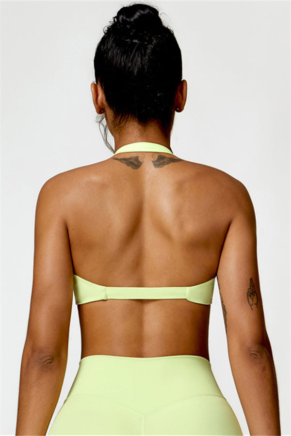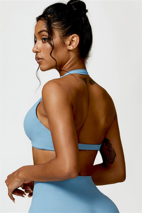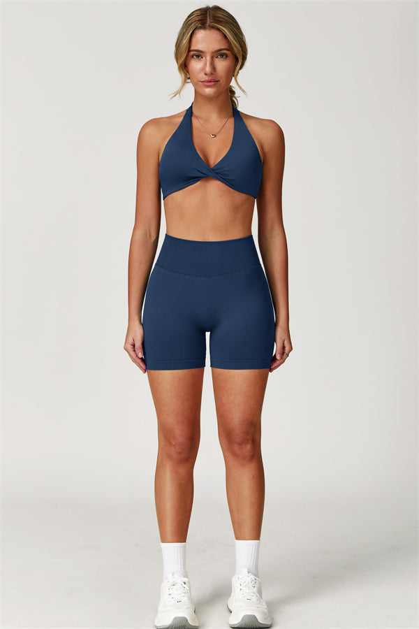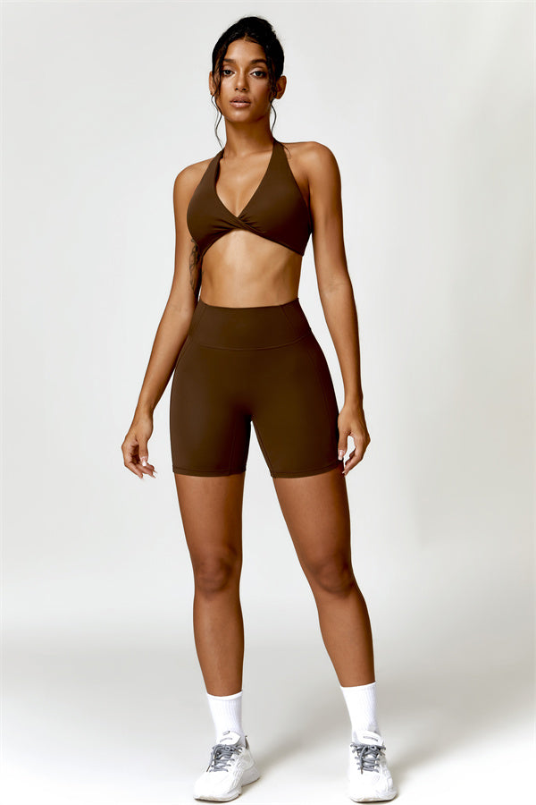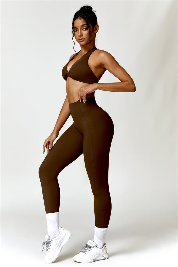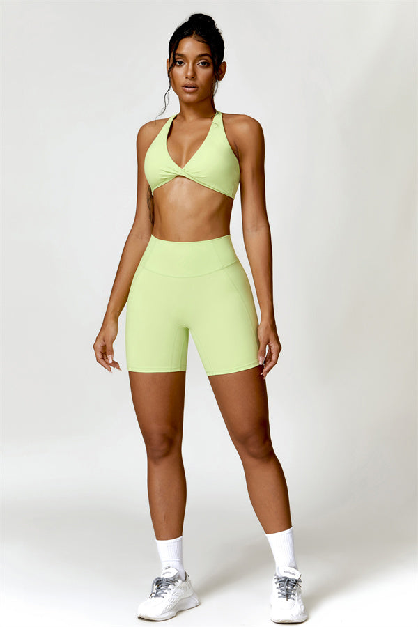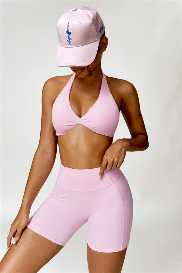 Introducing our twist-front sports bra, where sexy meets stylish. The eye-catching twisted design at the front adds a fashionable flair, while the open back beautifully showcases your shoulder blades, creating a stunning silhouette.