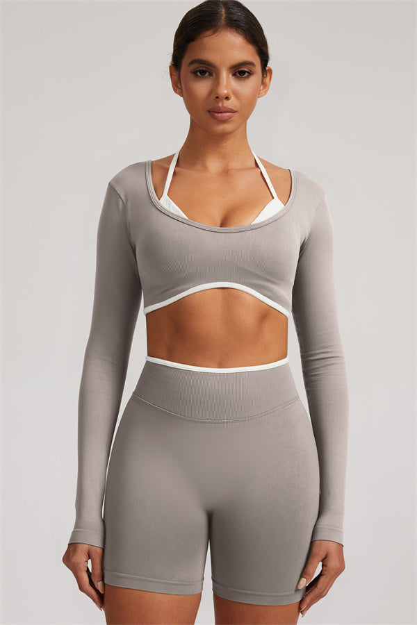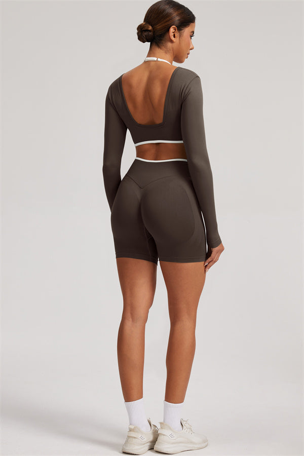 The Elevate Long Sleeve Crop top Shorts 2-Piece Set