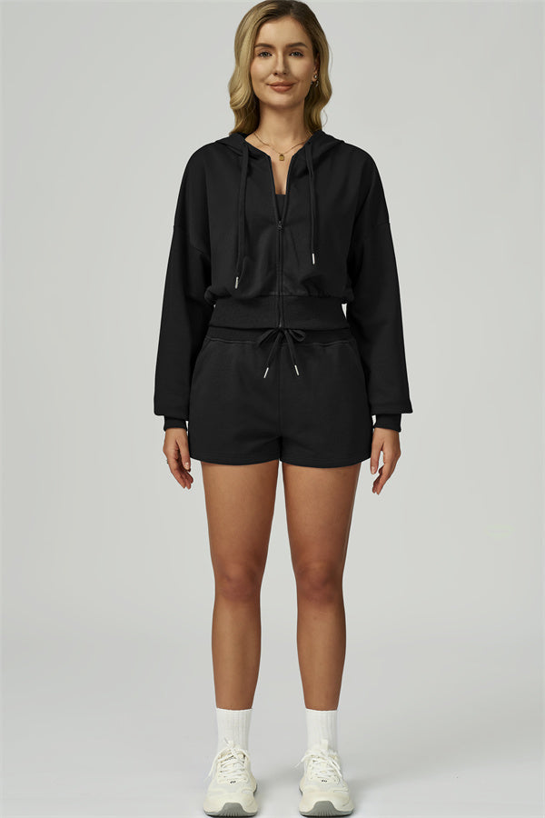 The FlexFit Crop Hoodie Shorts 2-Piece Set