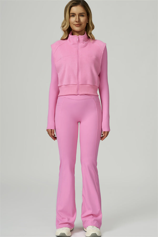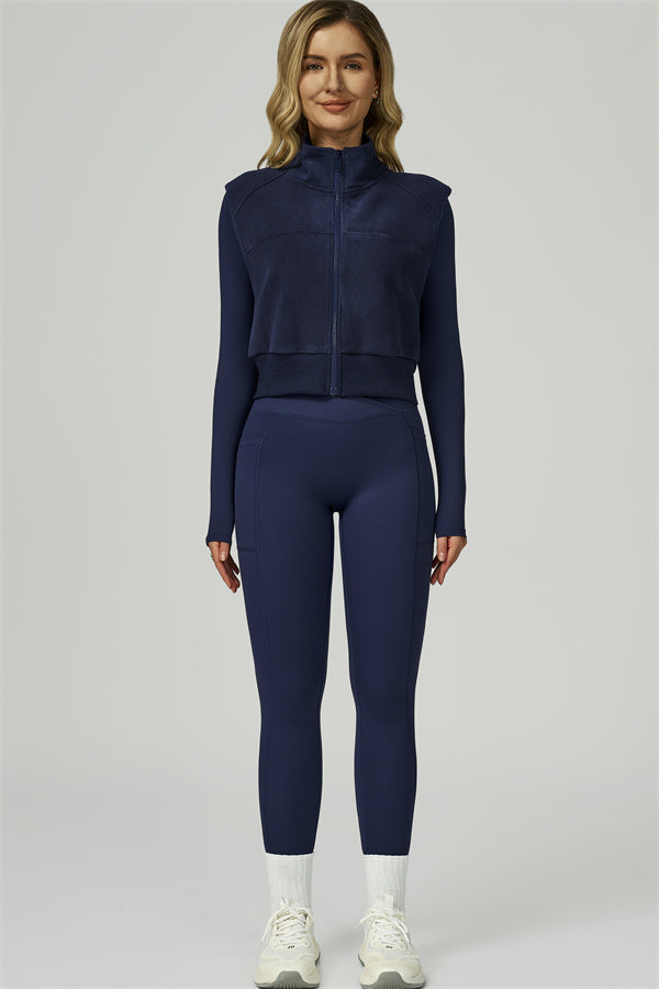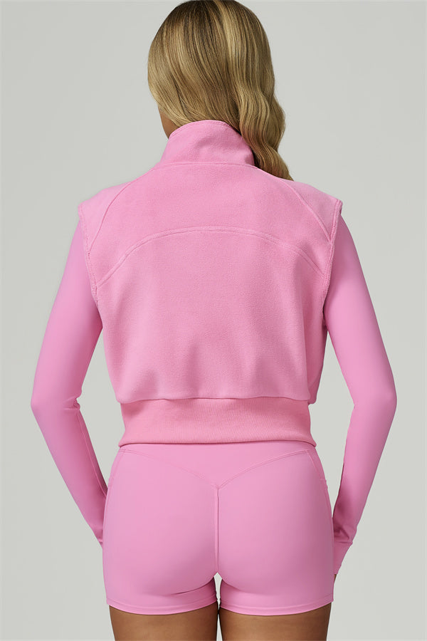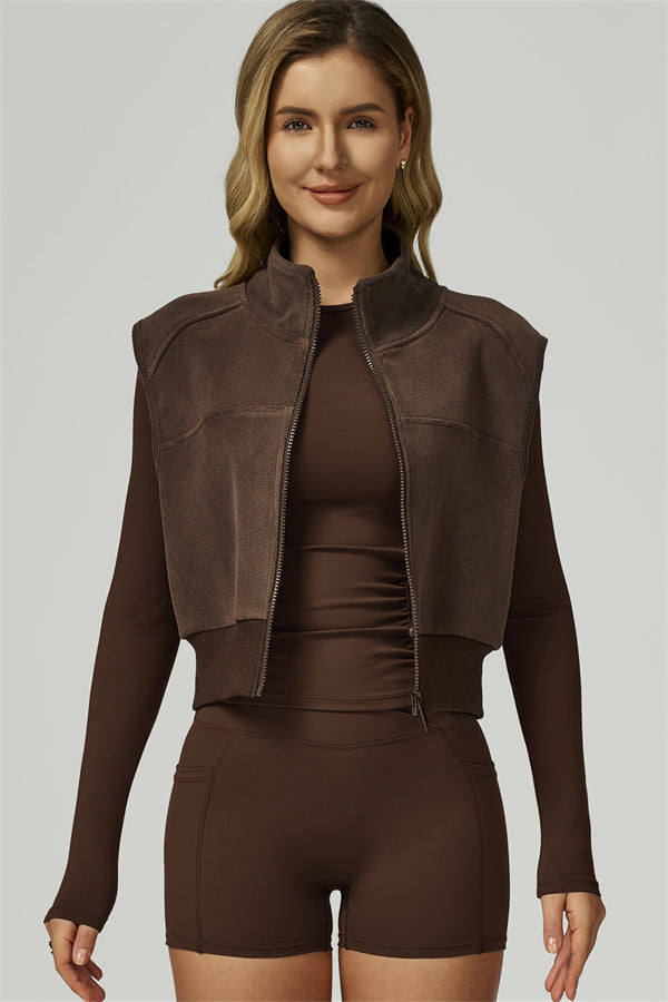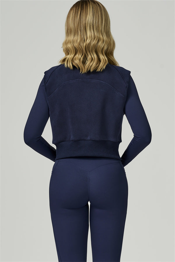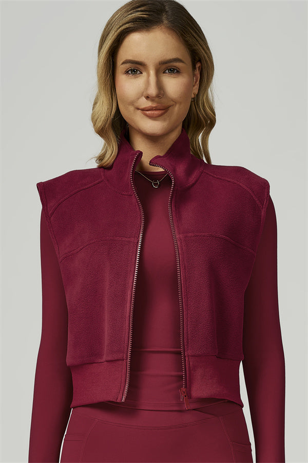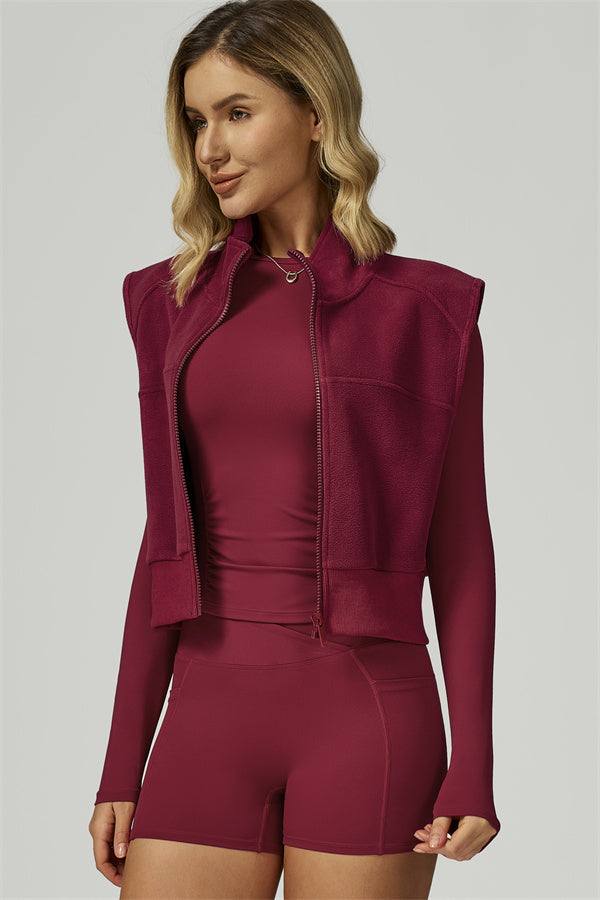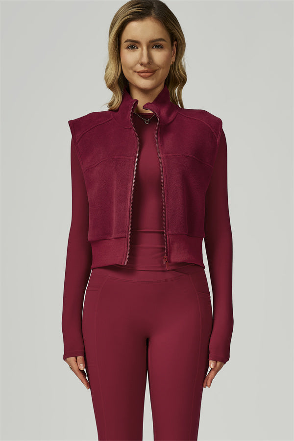 • Fitted, fleece-lined vest sculpts the silhouette