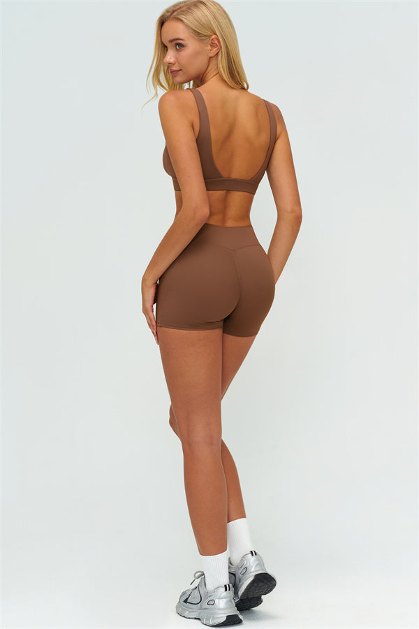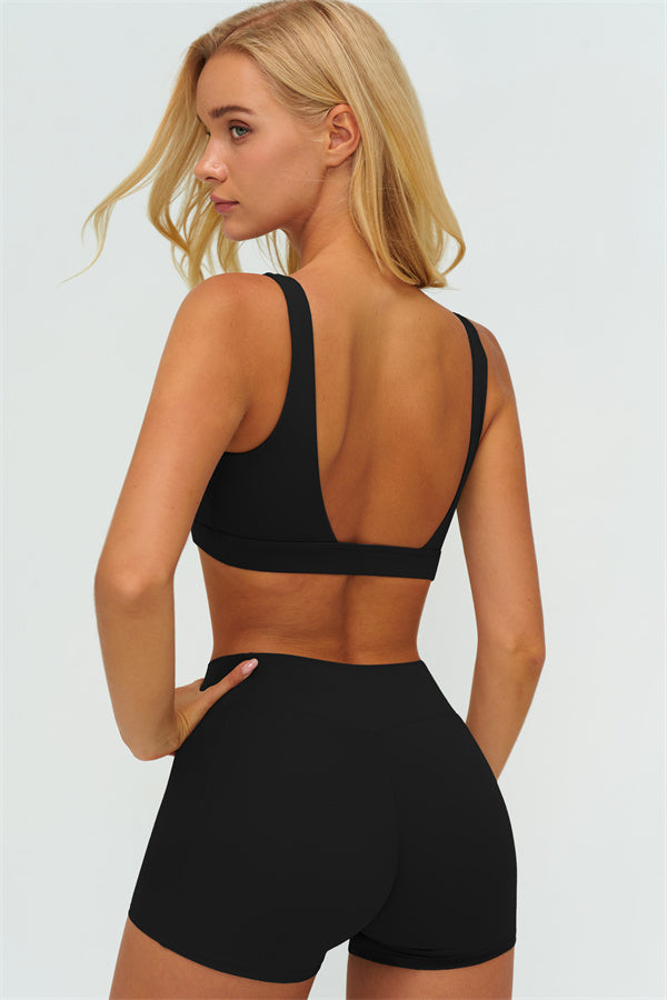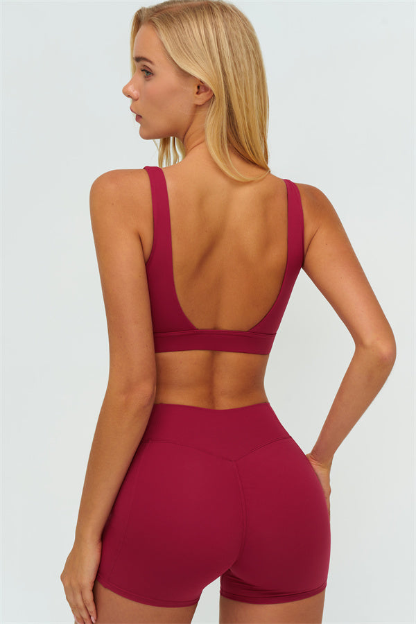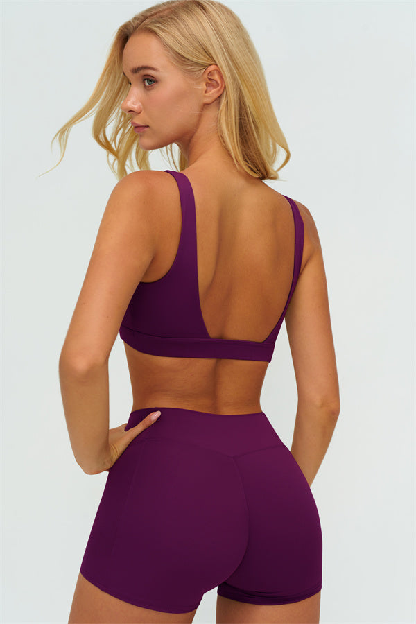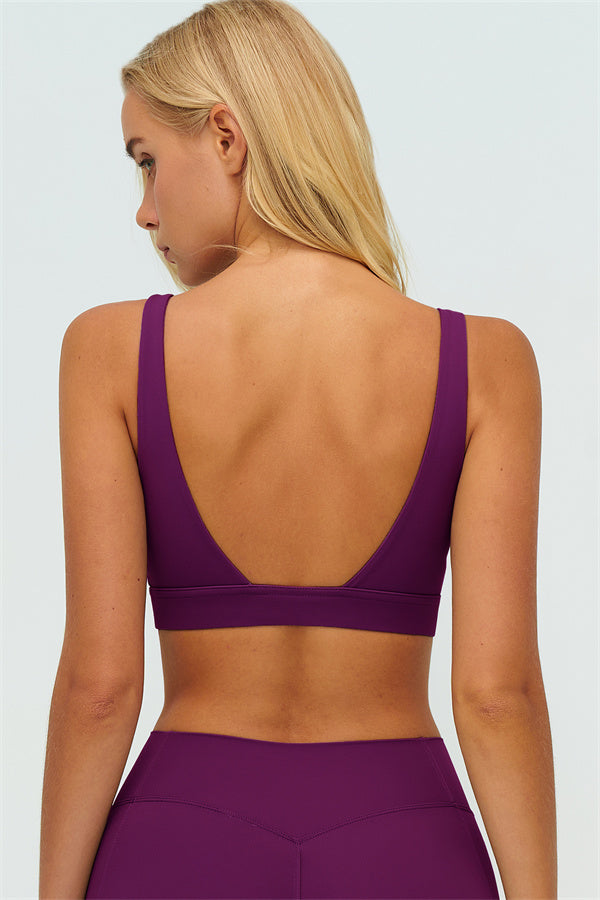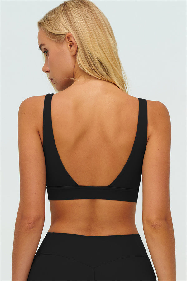 Designed to sculpt, support, and elevate your natural lines, The Lushness V-Back Sports Bra blends style and performance in perfect balance. Its structured neckline and geometric open-back design create a refined, feminine silhouette, ideal for training or casual wear.