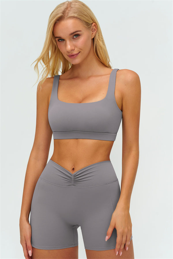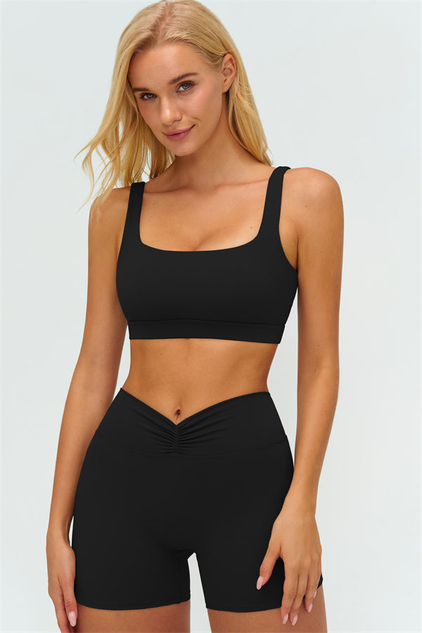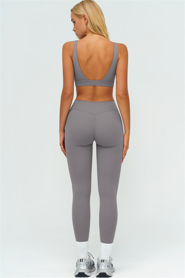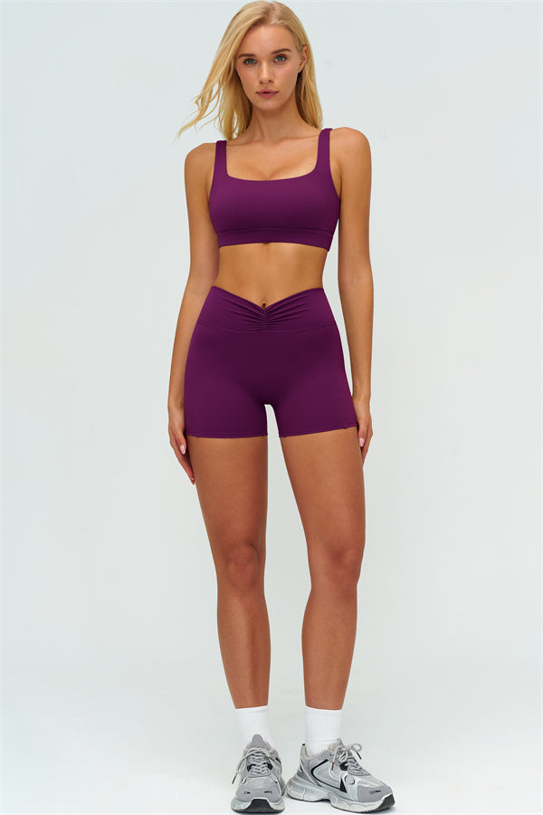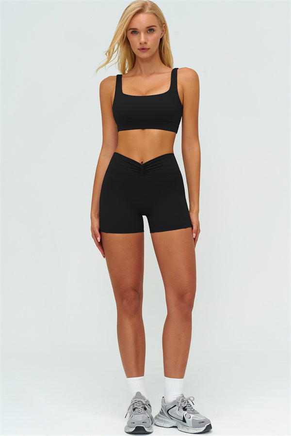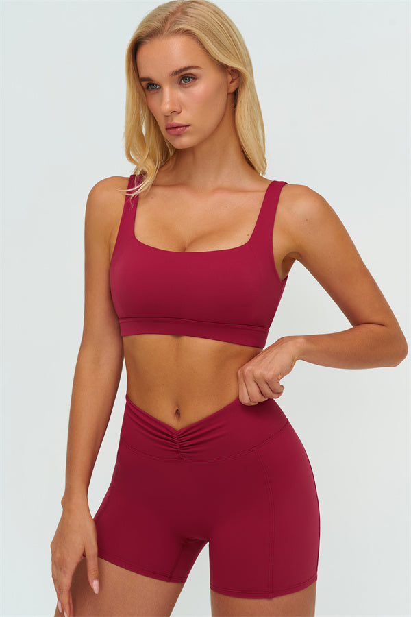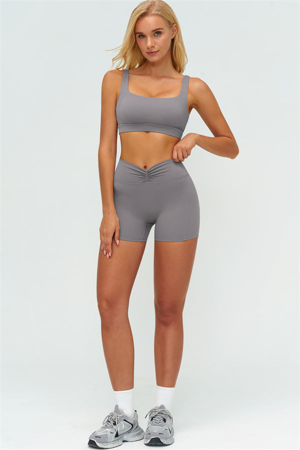 Designed to sculpt, support, and elevate your natural lines, The Lushness V-Back Sports Bra blends style and performance in perfect balance. Its structured neckline and geometric open-back design create a refined, feminine silhouette, ideal for training or casual wear.