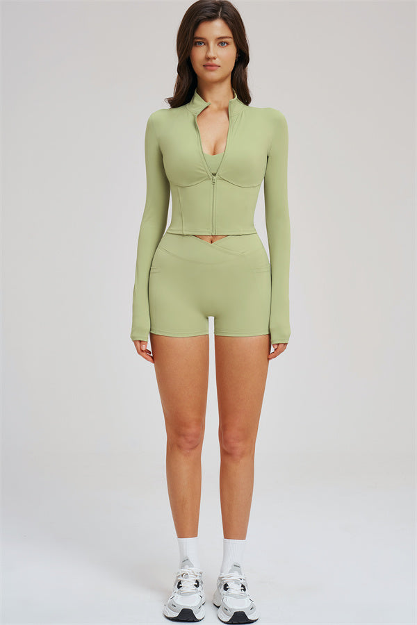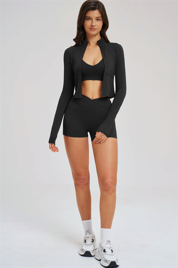 Stay stylish and protected during your workouts with The Sizzle Zip Jacket. Designed for a sleek, flattering fit, it offers both function and fashion for outdoor or indoor training.