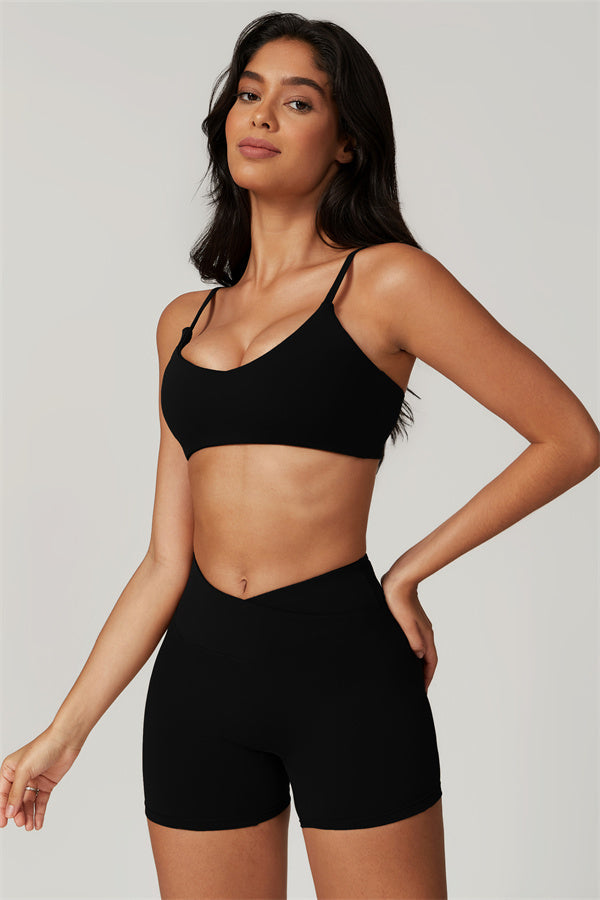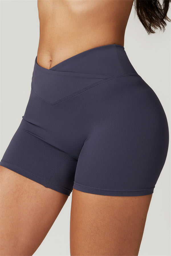 Elevate your workout wardrobe with these high-waisted shorts designed for both style and performance. The V-shaped cross-fold waistband provides a secure fit, ensuring the shorts stay in place no matter how intense your activity. The sculpting design enhances your natural curves, giving your glutes a lifted and rounded appearance.
