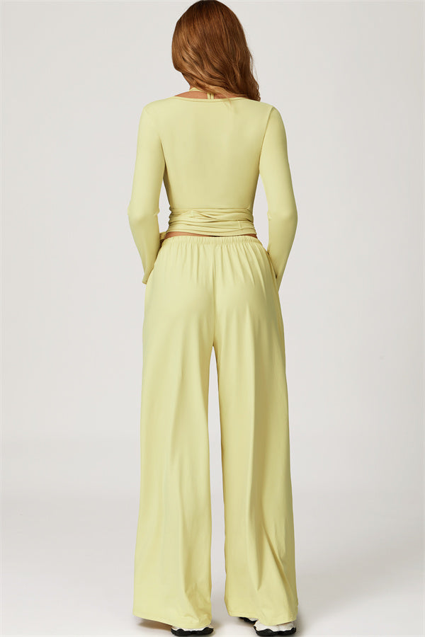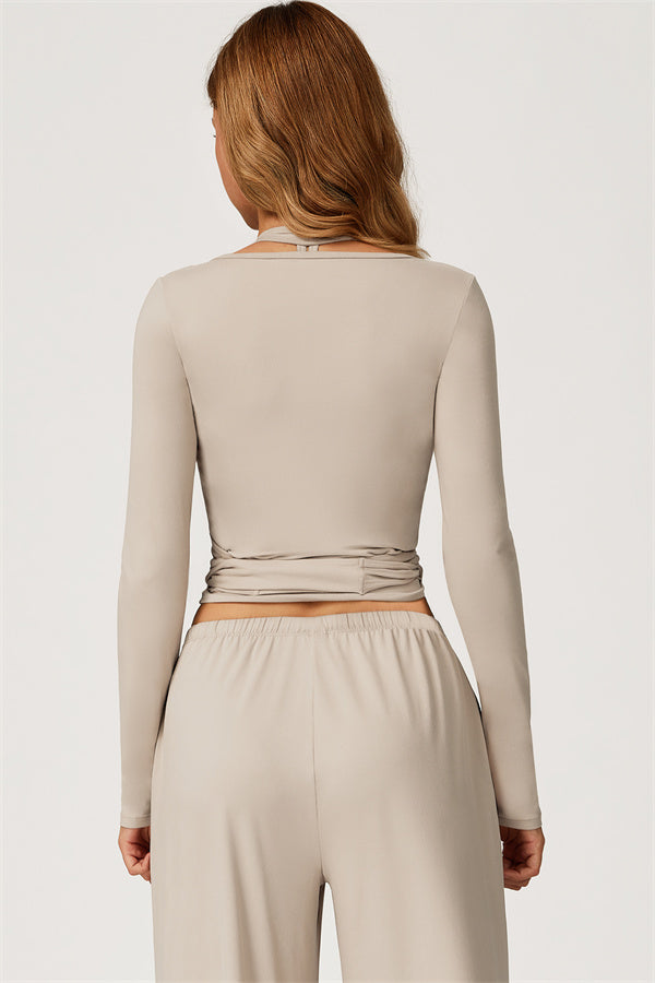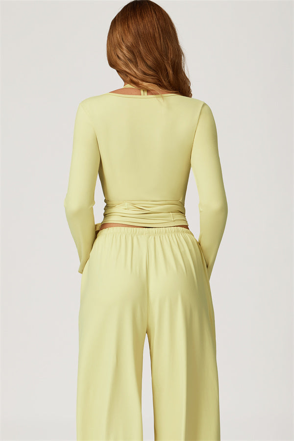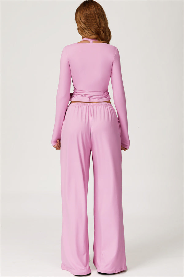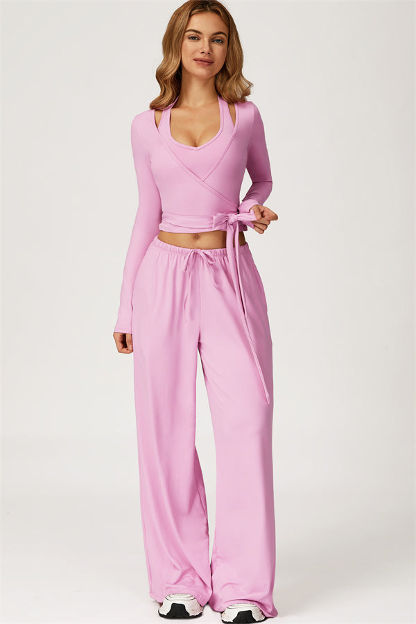 Elevate your movement and style with the Sprint 3-Piece Set. Combining a long sleeve crop top, halter tank top, and adjustable sweatpants, this set is crafted from soft, brushed Korean silk fabric for comfort, flexibility, and effortless layering , perfect for workouts or casual wear.