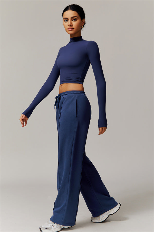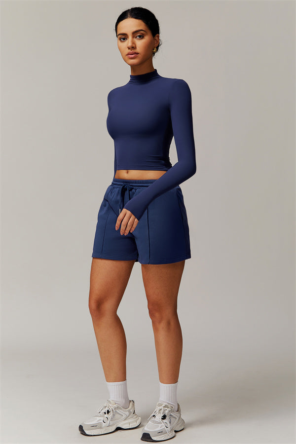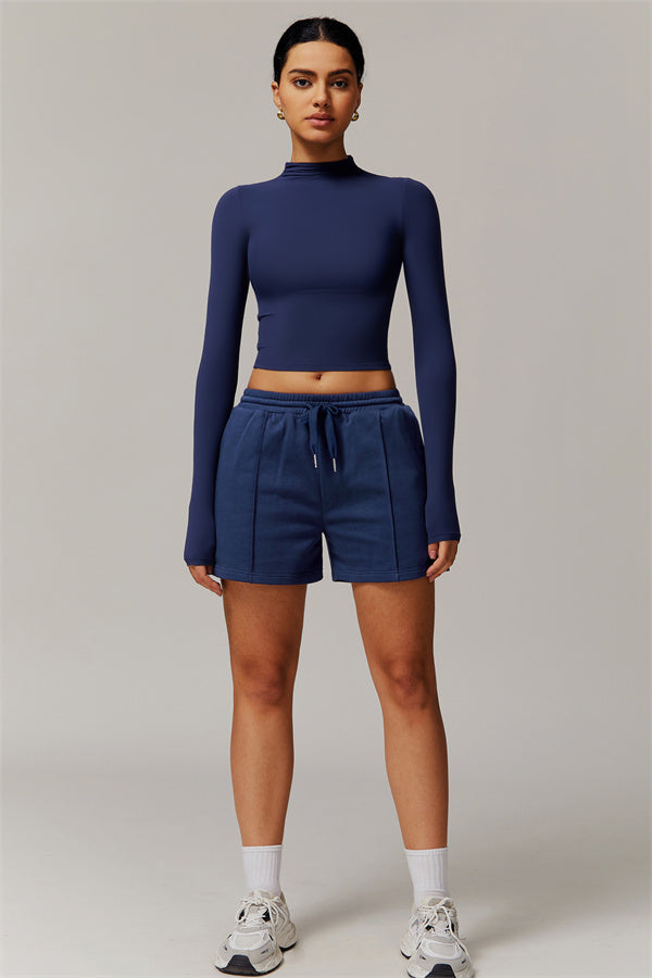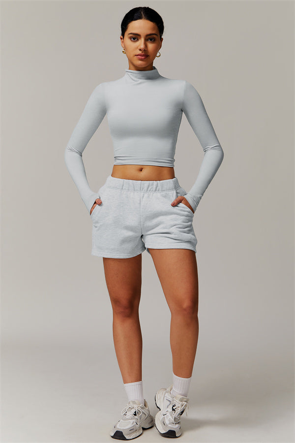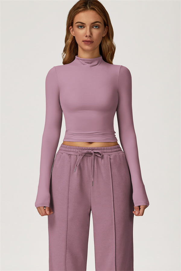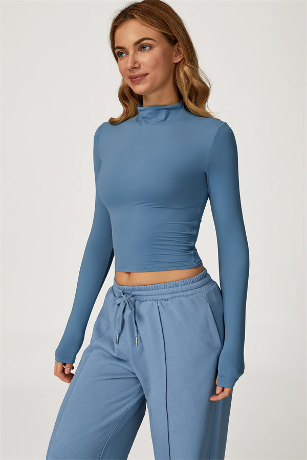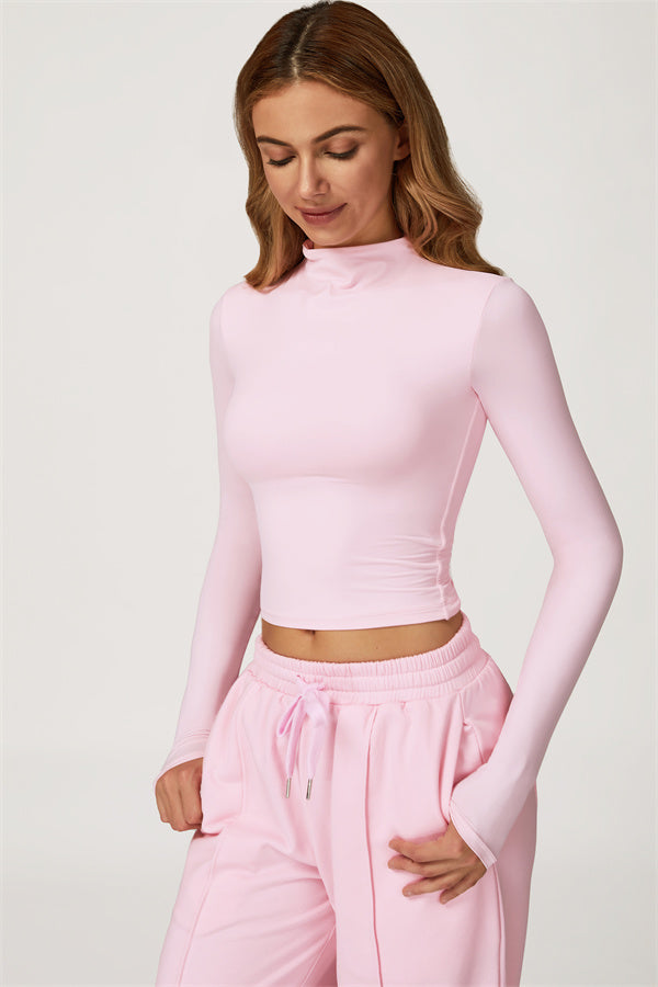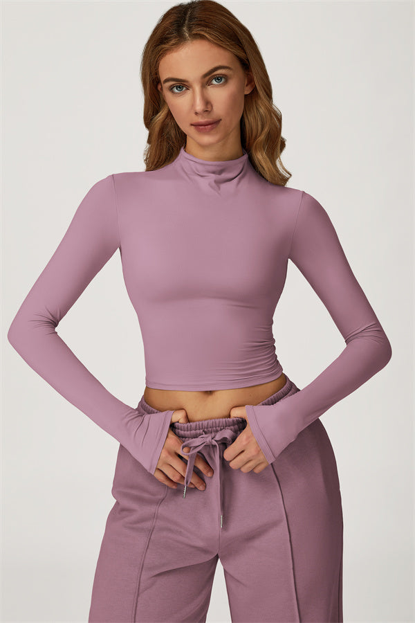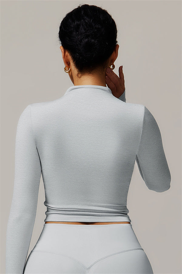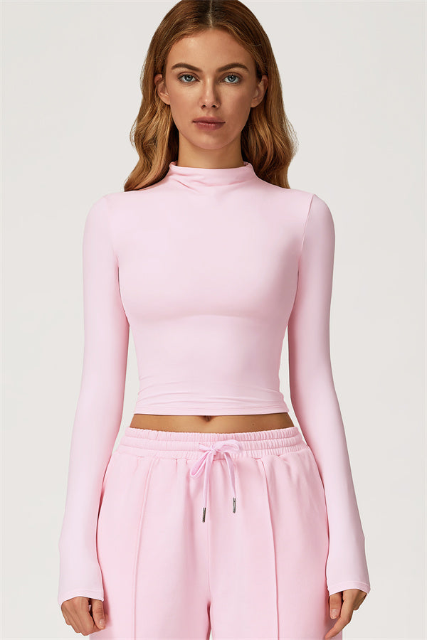 Designed to elegantly accentuate your neckline. This fitted long-sleeve piece offers versatility, seamlessly transitioning from home workouts to outdoor activities. With a longer hem for added comfort and a gentle compression fit to smooth your midsection, it's perfect for all body types.
