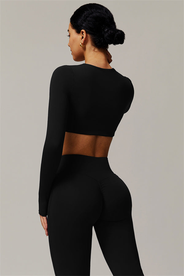 Mid-Length & Fitted Fit – The long sleeves paired with a chest-level cropped design show off your waistline, creating a balanced and stylish look.