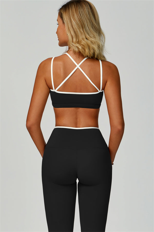 Designed to sculpt, support, and move with you. The Quest Set brings a bold yet minimal look with contour-enhancing lines and a sleek, barely-there feel. This matching set includes a statement back sports bra and high-waisted leggings.