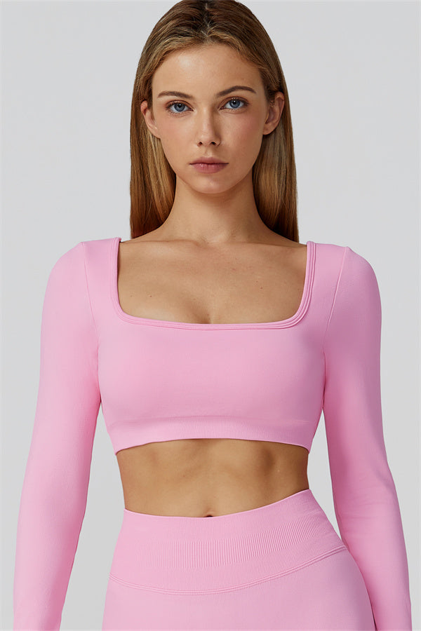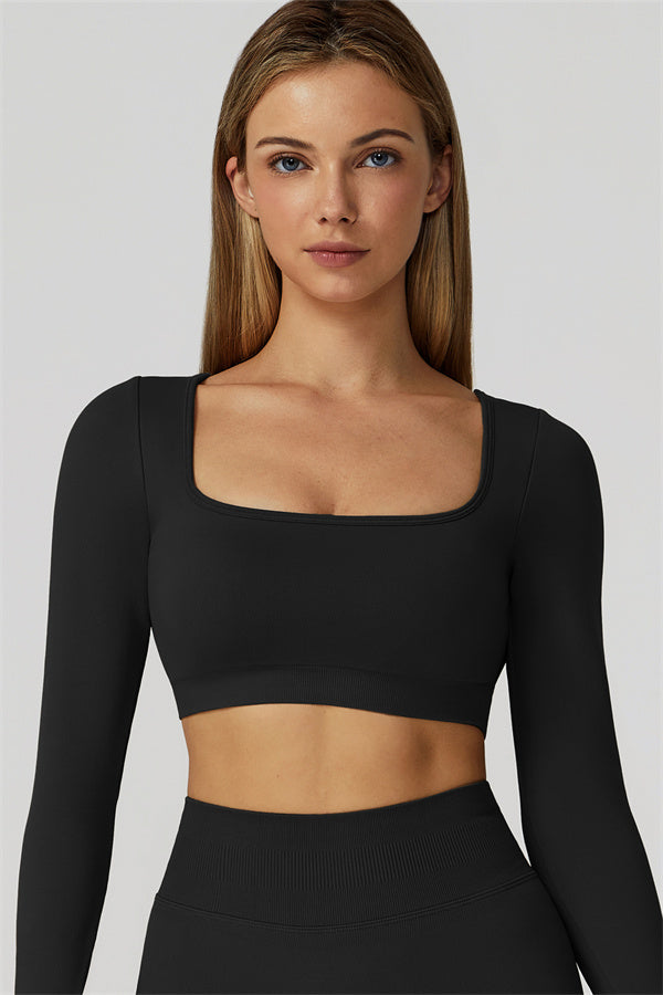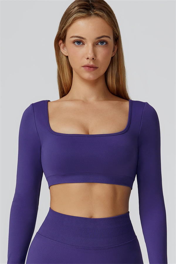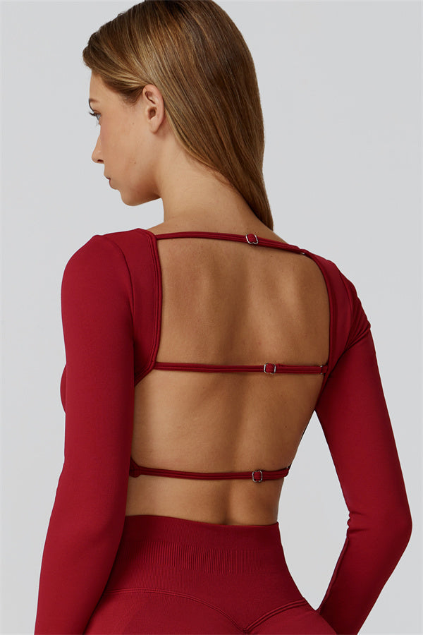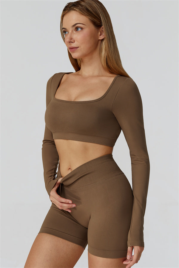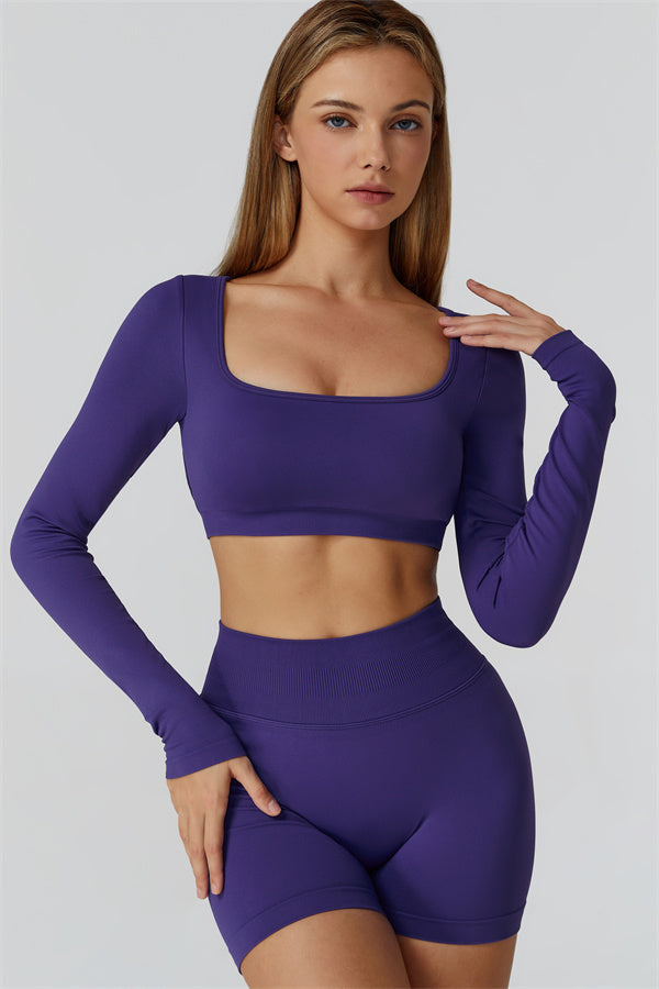 Stay cool and confident with the Reign Set, featuring a breathable, open-back long sleeve crop top and sculpting high-waisted shorts. Made from seamless, recycled knit fabric, this matching set sculpts your silhouette while offering comfort and versatile style from workout to streetwear.