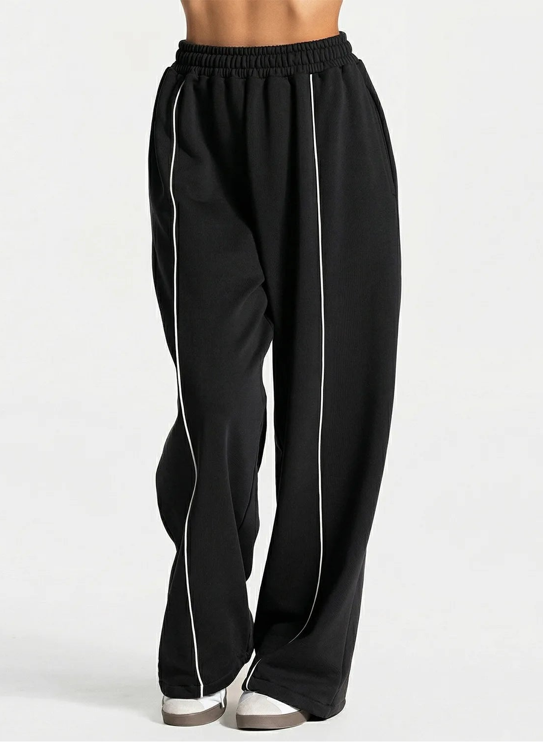 The Contrast Flared Joggers combine casual comfort with a sporty style. The oversized fit, adjustable elasticated cuffs, and drawstring waistband provide personalised adjustment options. At the same time, the white contrast stitching adds stylish accents. Whether as an add-on for training or a casual piece for your free time, the Contrast Joggers can be styled in a variety of ways.