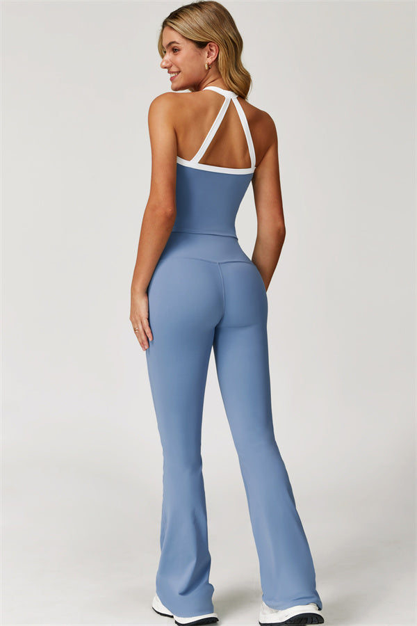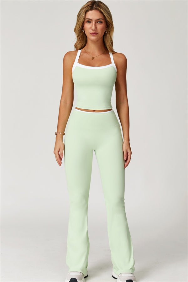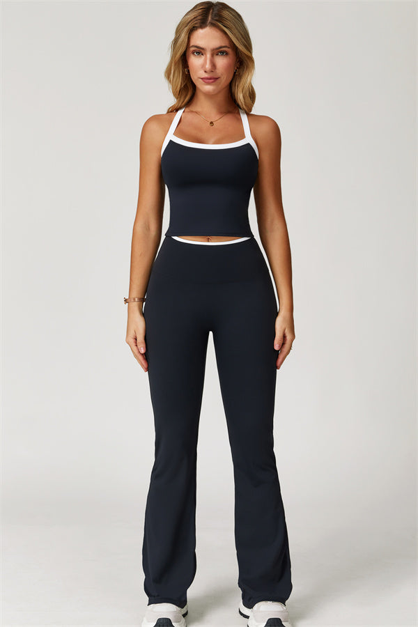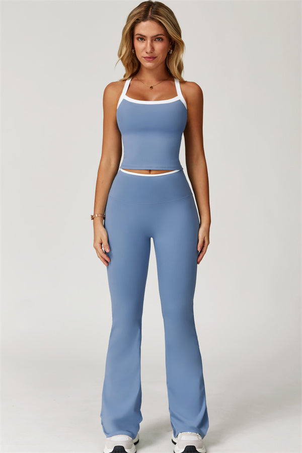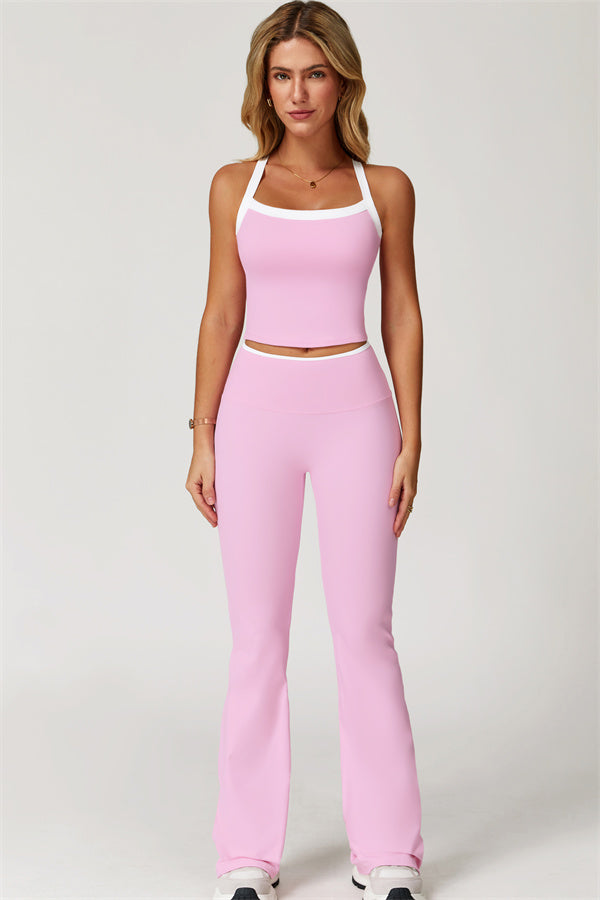 The Quest Cross Back Crop Top Flared Leggings 2-Piece Set