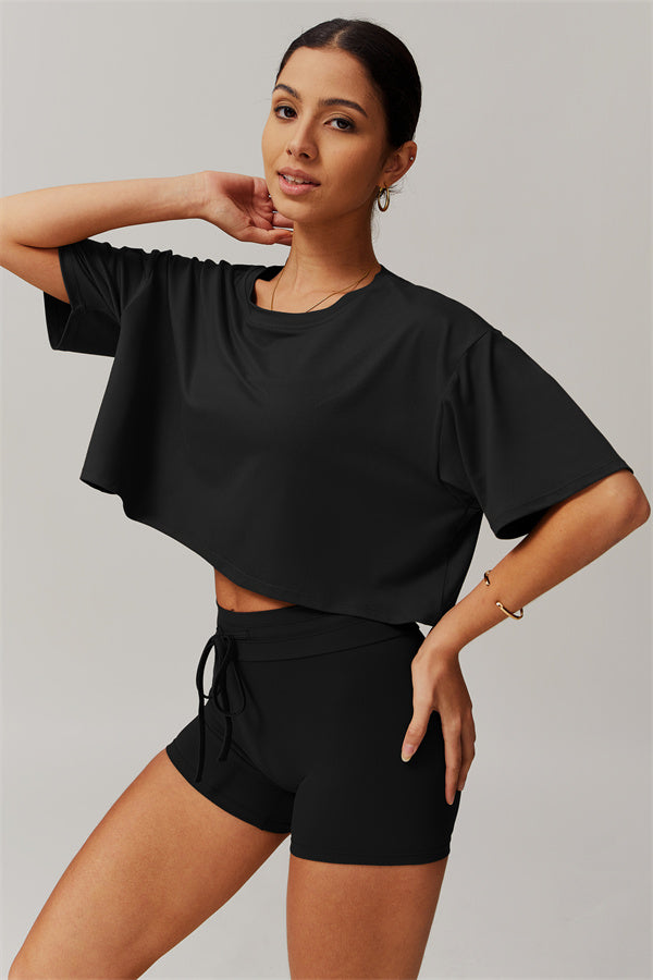 Experience effortless comfort and style with our Cropped Loose-Fit T-Shirt, designed for a relaxed yet flattering look. Perfect for workouts, casual wear, or layering, this tee offers a breezy fit that moves with you while enhancing your silhouette.