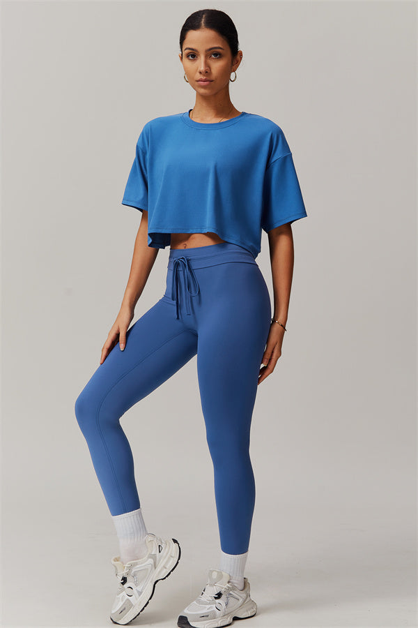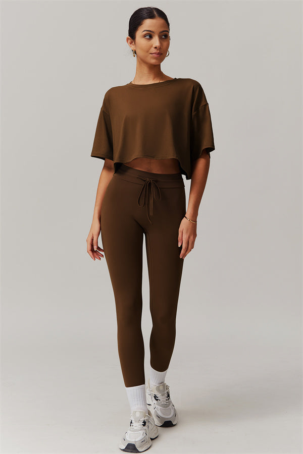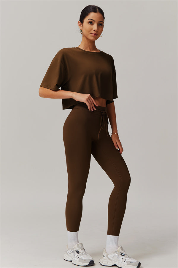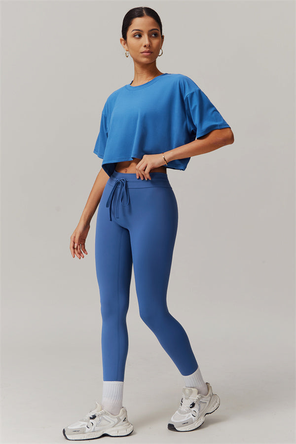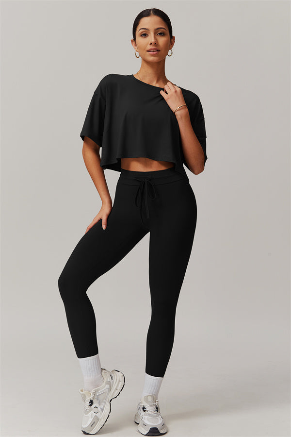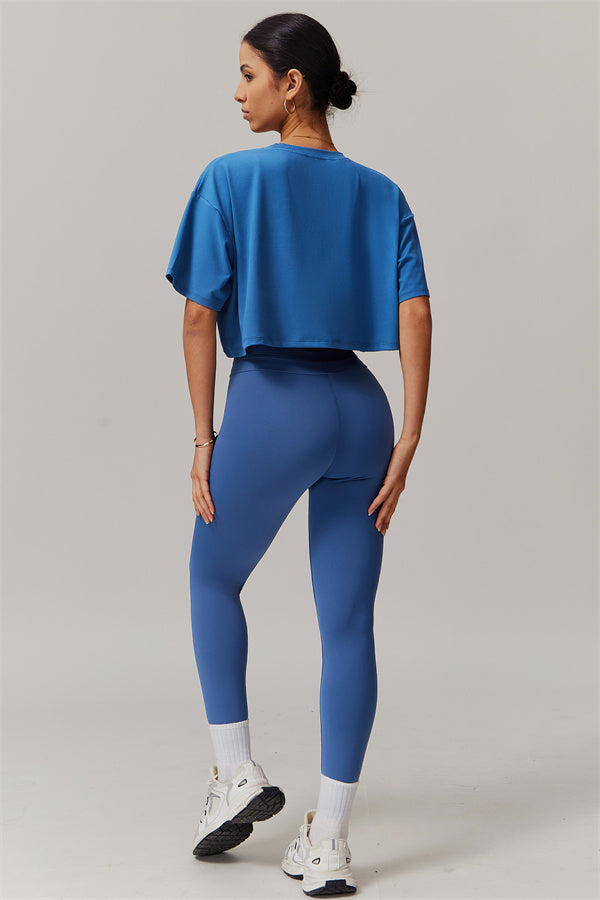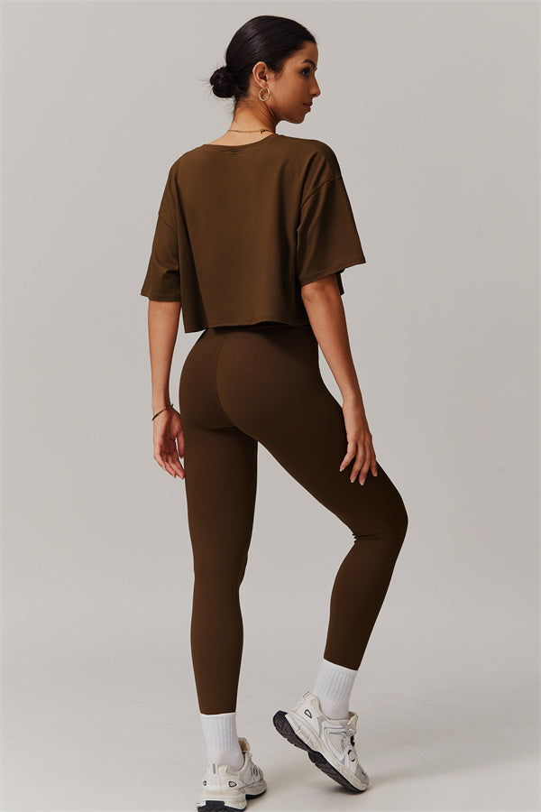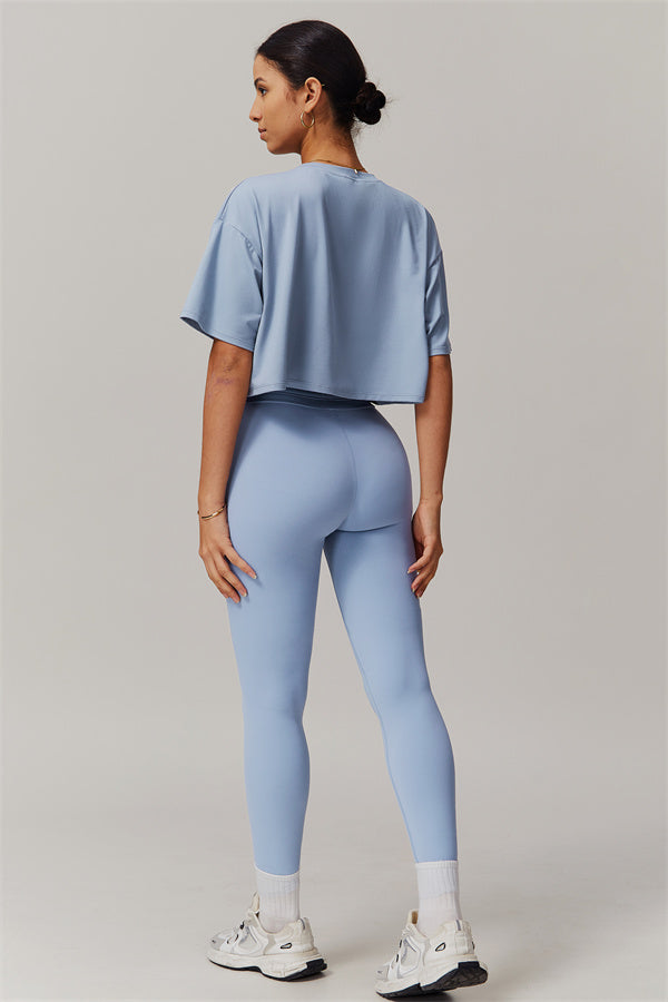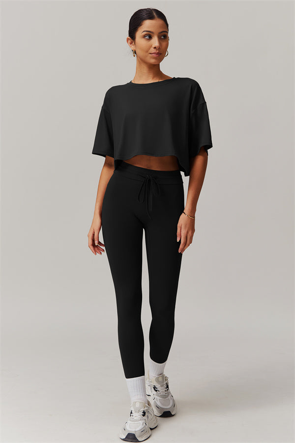 Ideal for pairing with high-waisted leggings or joggers, this cropped T-shirt brings a touch of effortless chic to any active or casual outfit.