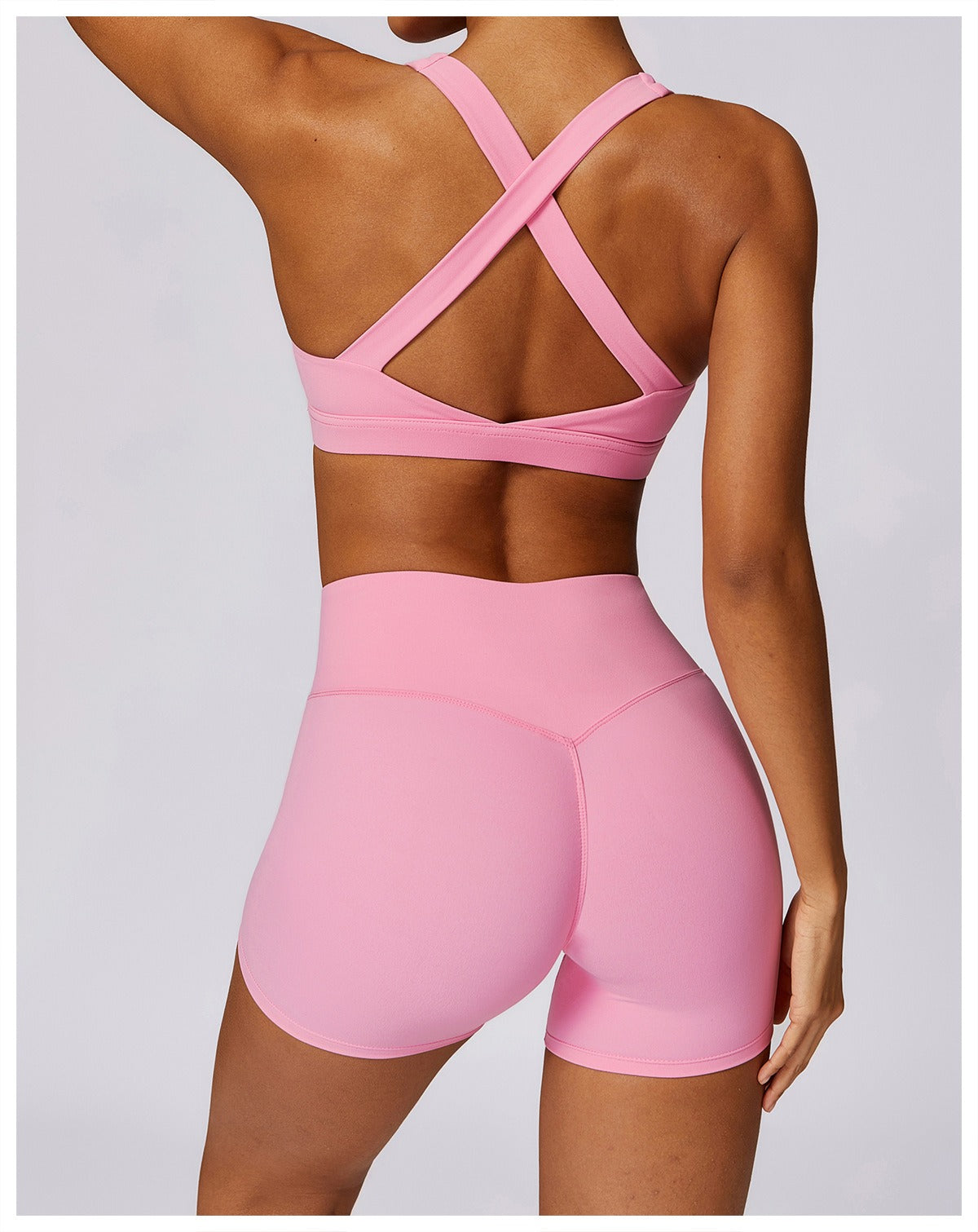 Our classic set features our signature sculpt shorts with a high and elastic waistband and a matching crop top. Both pieces hug your body in all the right places. Style together or separately to create a multitude of looks. Xoxo